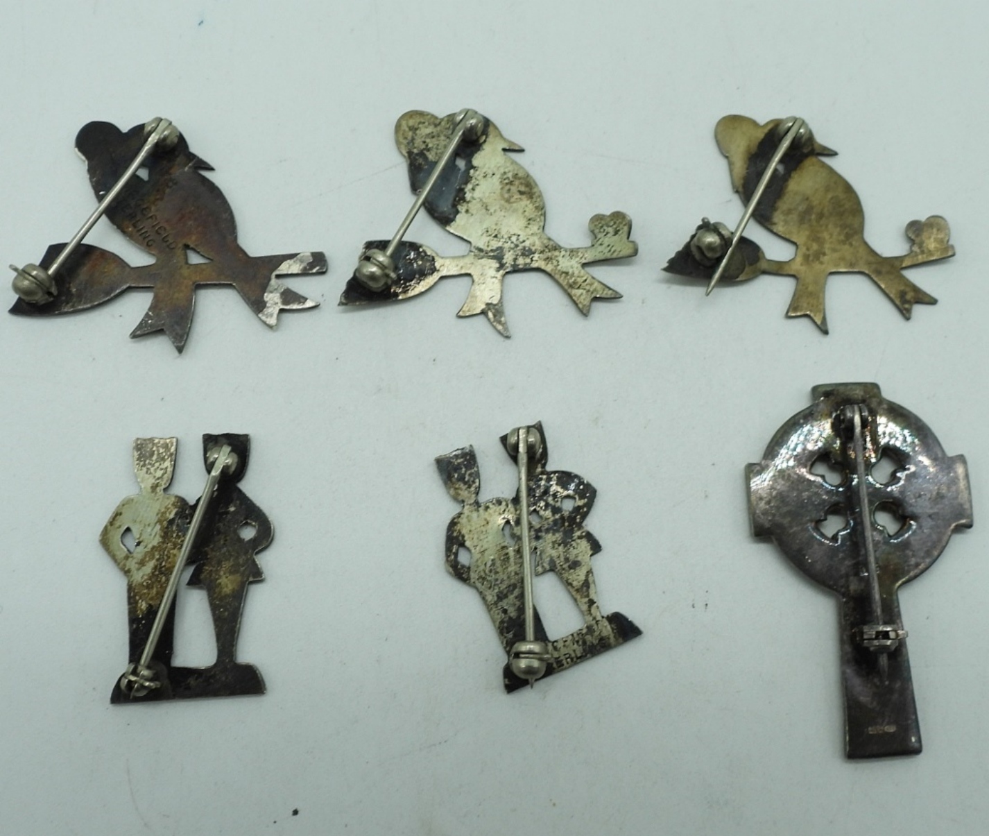 Six sterling pins, 1″ – 1.5″ long. Two are engraved with years, ’63 & ’64. (14.3 dwt) (6x4x2)