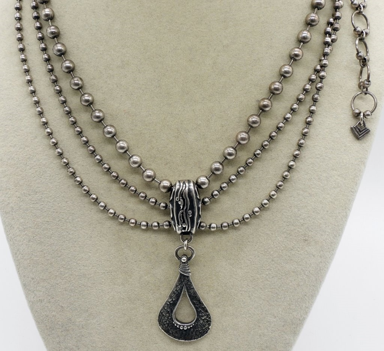 Retired Silpada design, 3 strand oxidized sterling necklace. 15-19″ adjustable length. (30 dwt) (6x4x2)