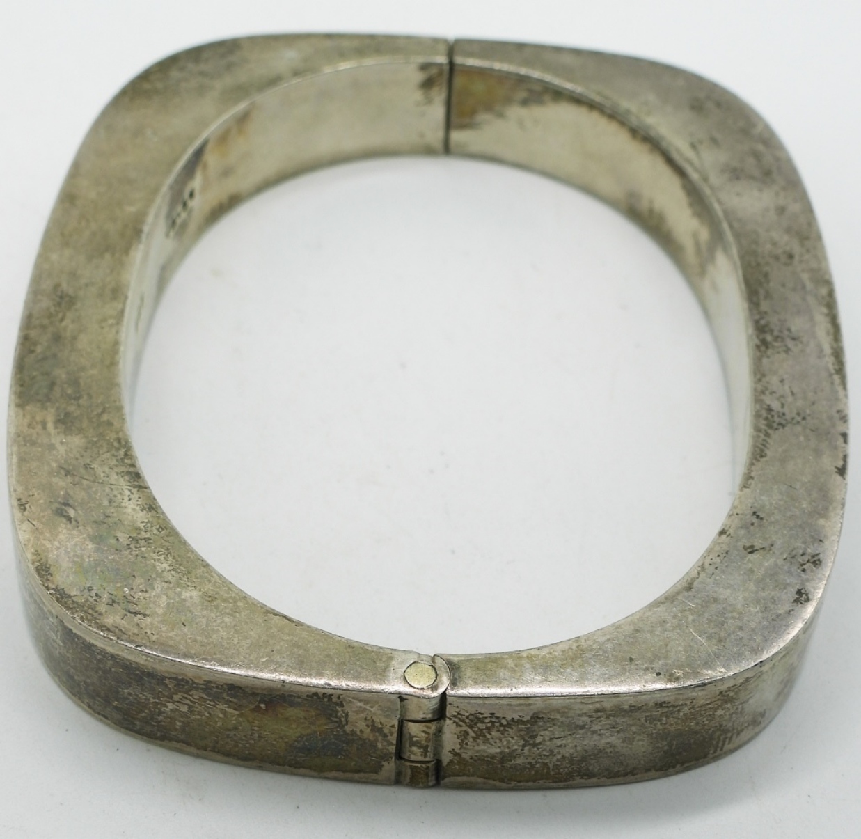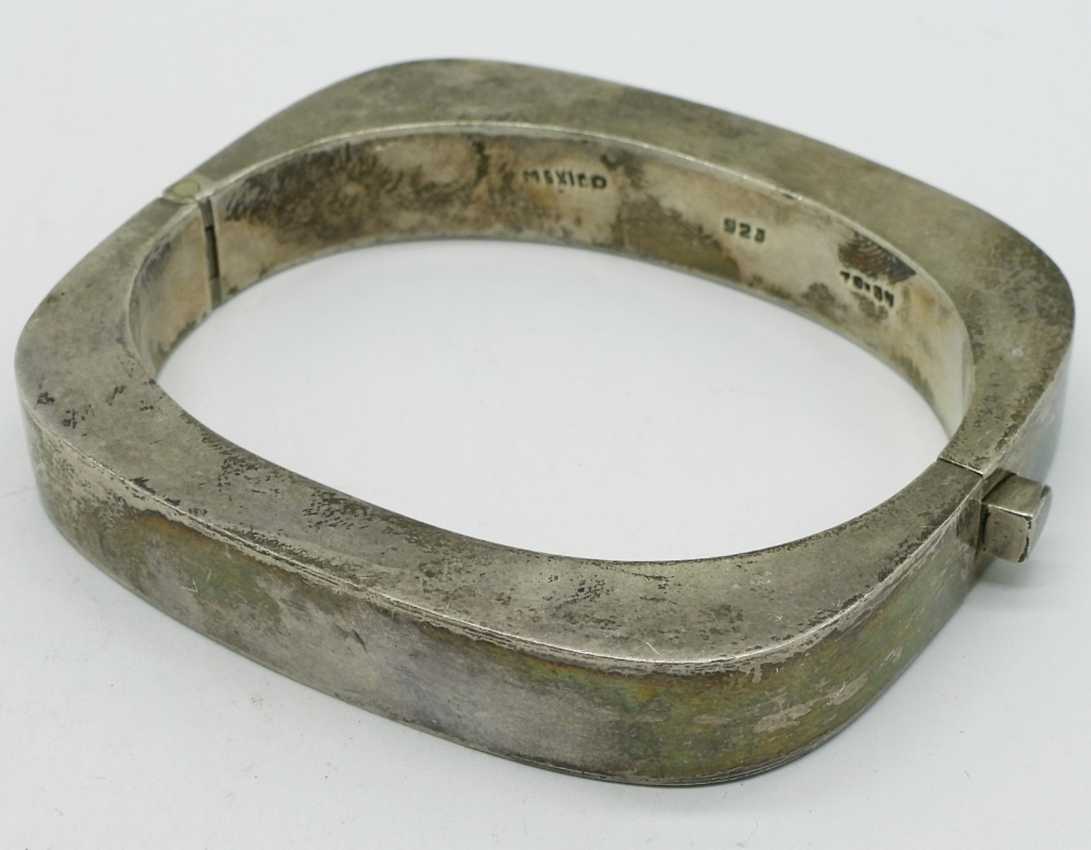Thick and Heavy Taxco Sterling Hinged Bracelet. TD-34. Hing and clasp work well. (29.4 dwt)