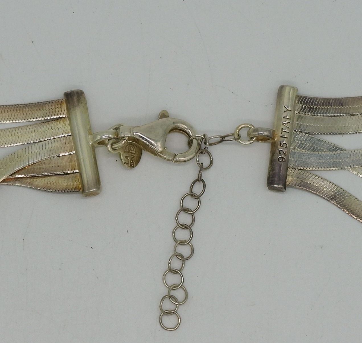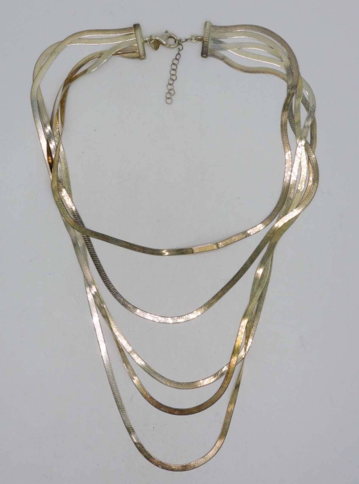 Five strand, sterling herringbone necklace, 24″ long. (21.5 dwt)