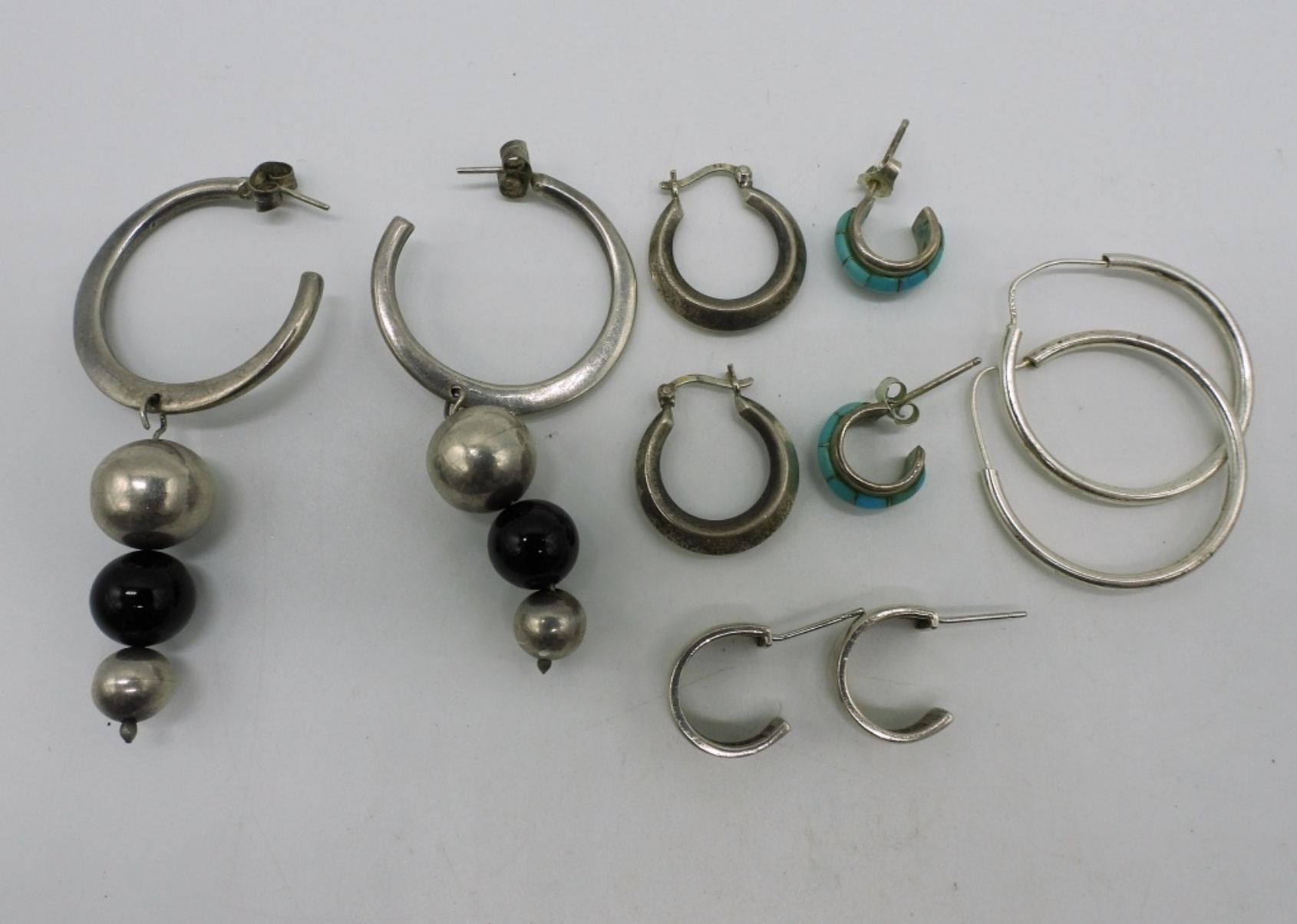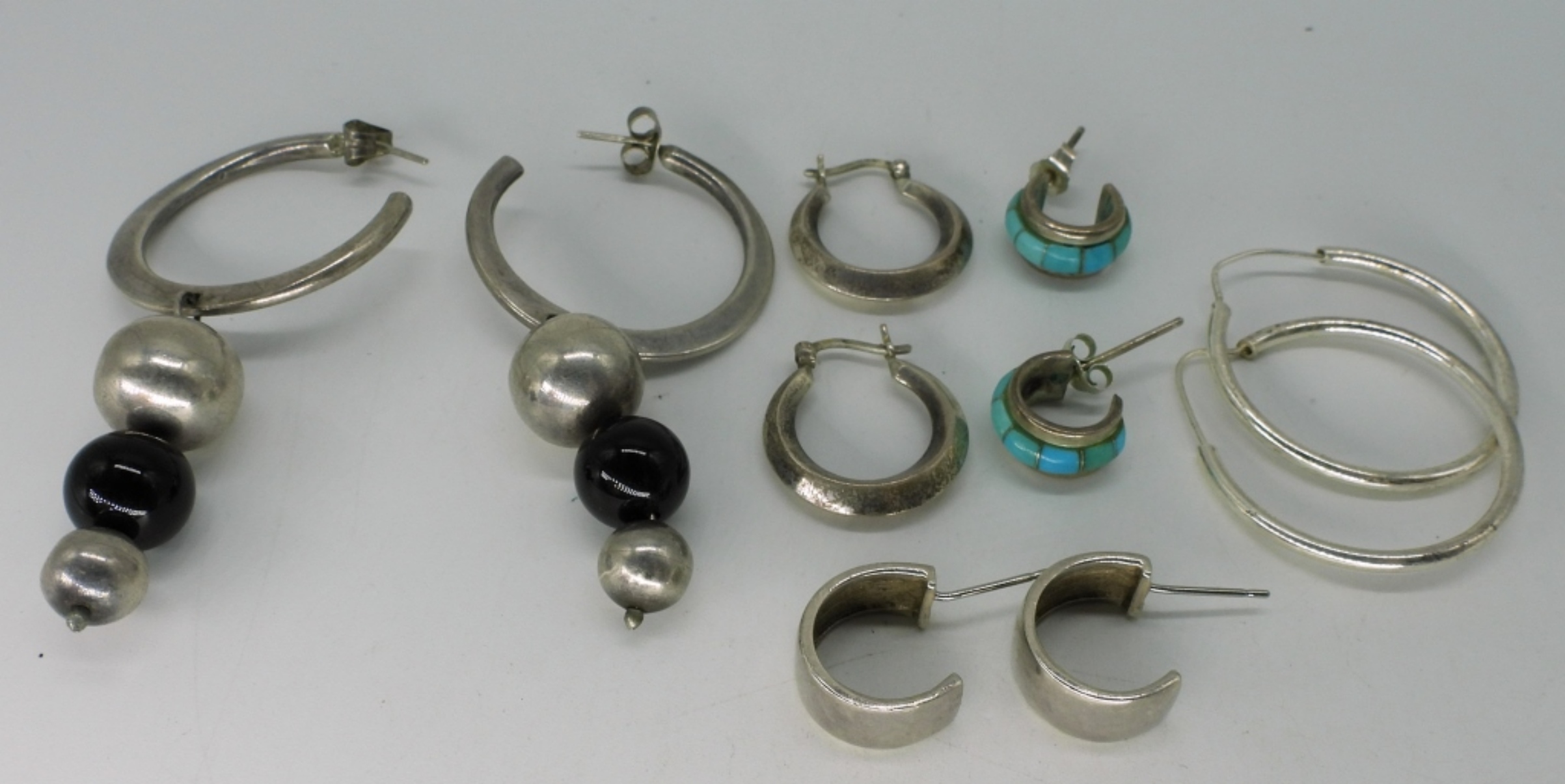 Five pair of sterling pierced hoop earrings. (19 dwt) (6x4x2)