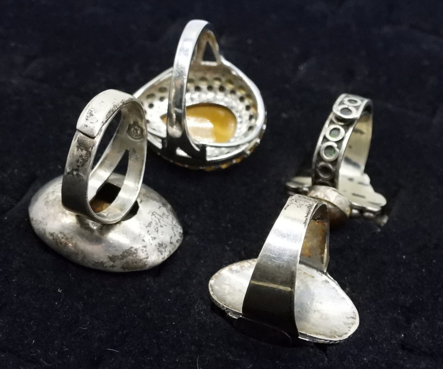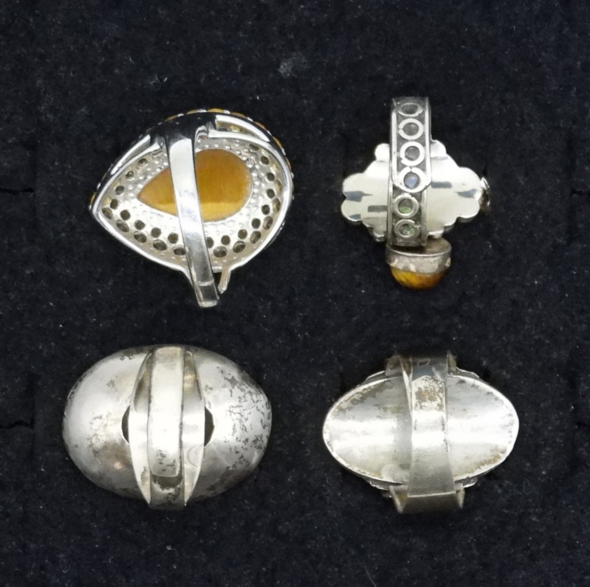 Four sterling tigers eye gemstone rings. One size 8 and the other 3 are adjustable. (17.5 dwt)