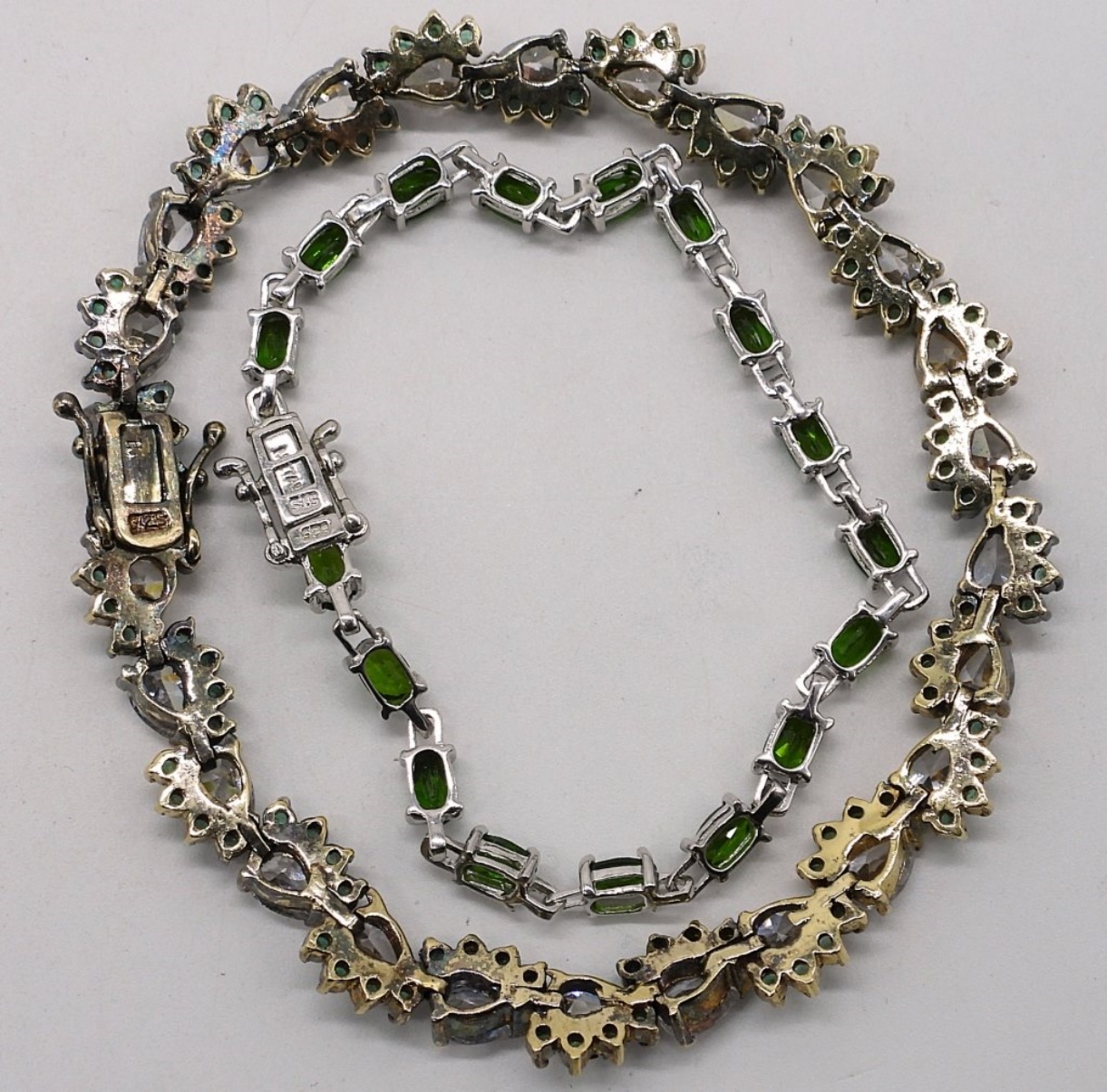 Two beautiful green gemstone tennis bracelets, 6.5″ & 7.5″ long. (15 dwt)