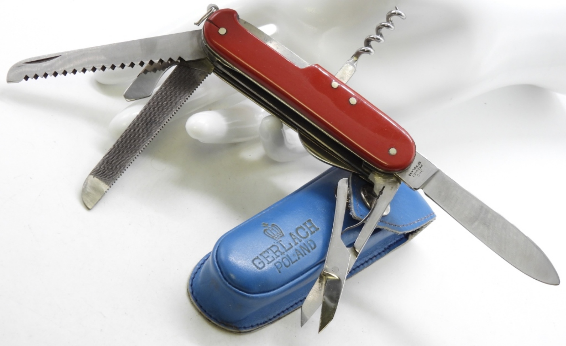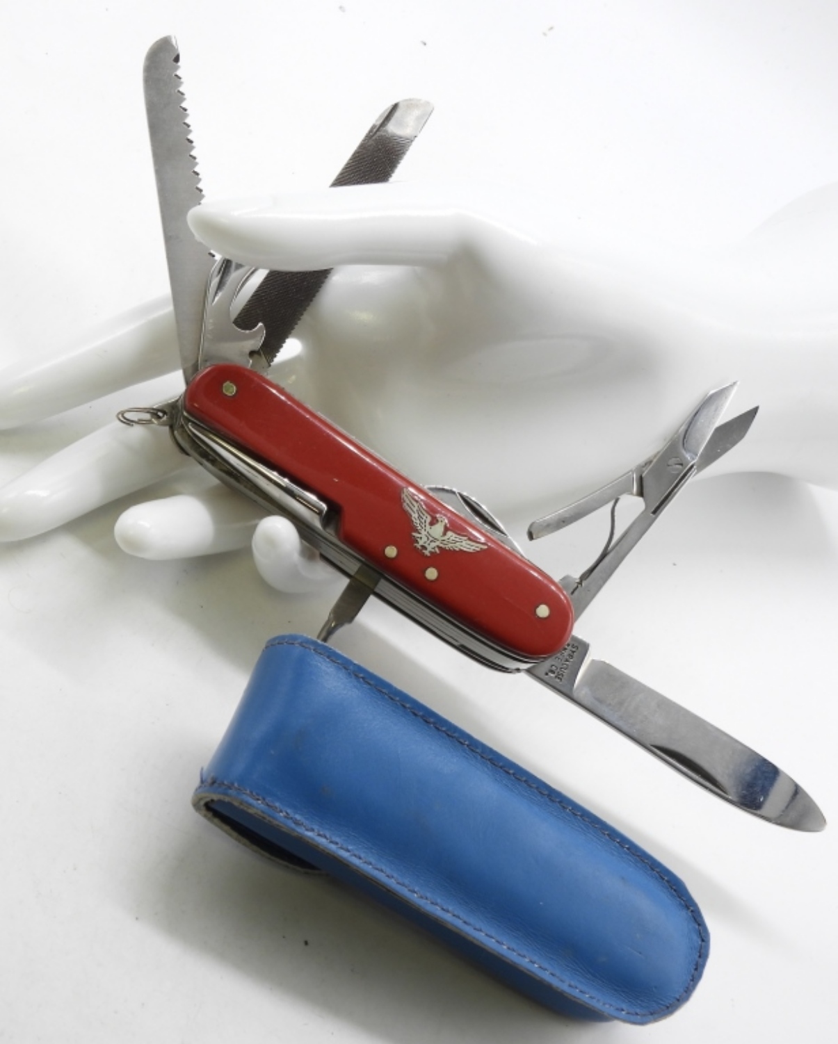 Multiple different blades & tools. Comes in sheath