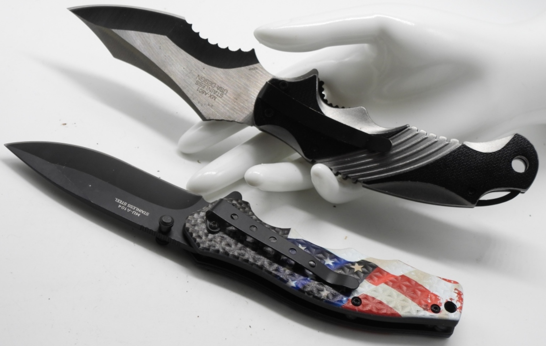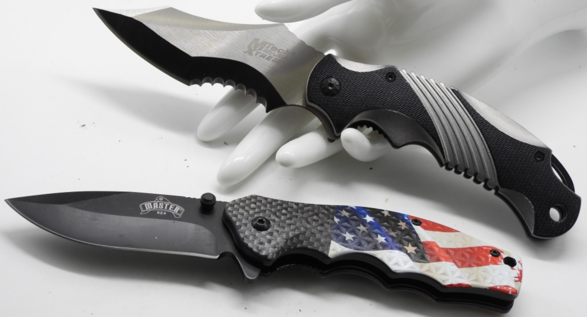1) Master Edge USA flag handle. 2) MTech XTream Ballistic