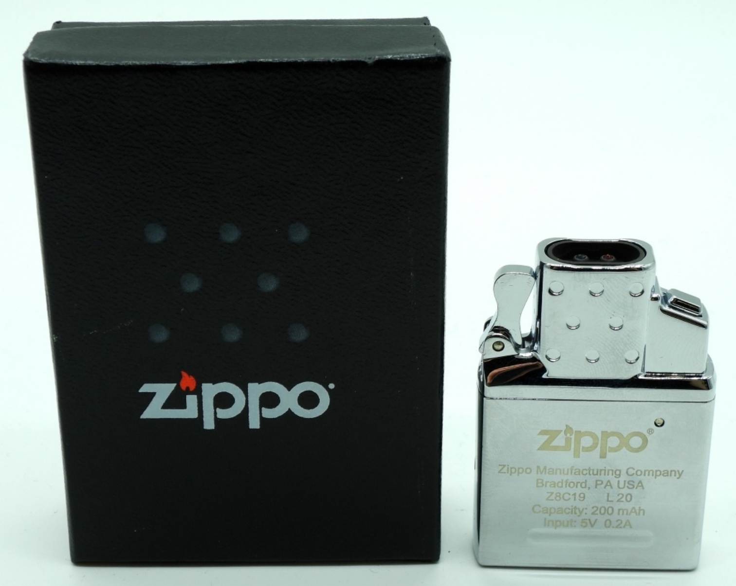 Comes in its original box. USB rechargeable, 200 mah lithium ion battery. Charging cord is included.