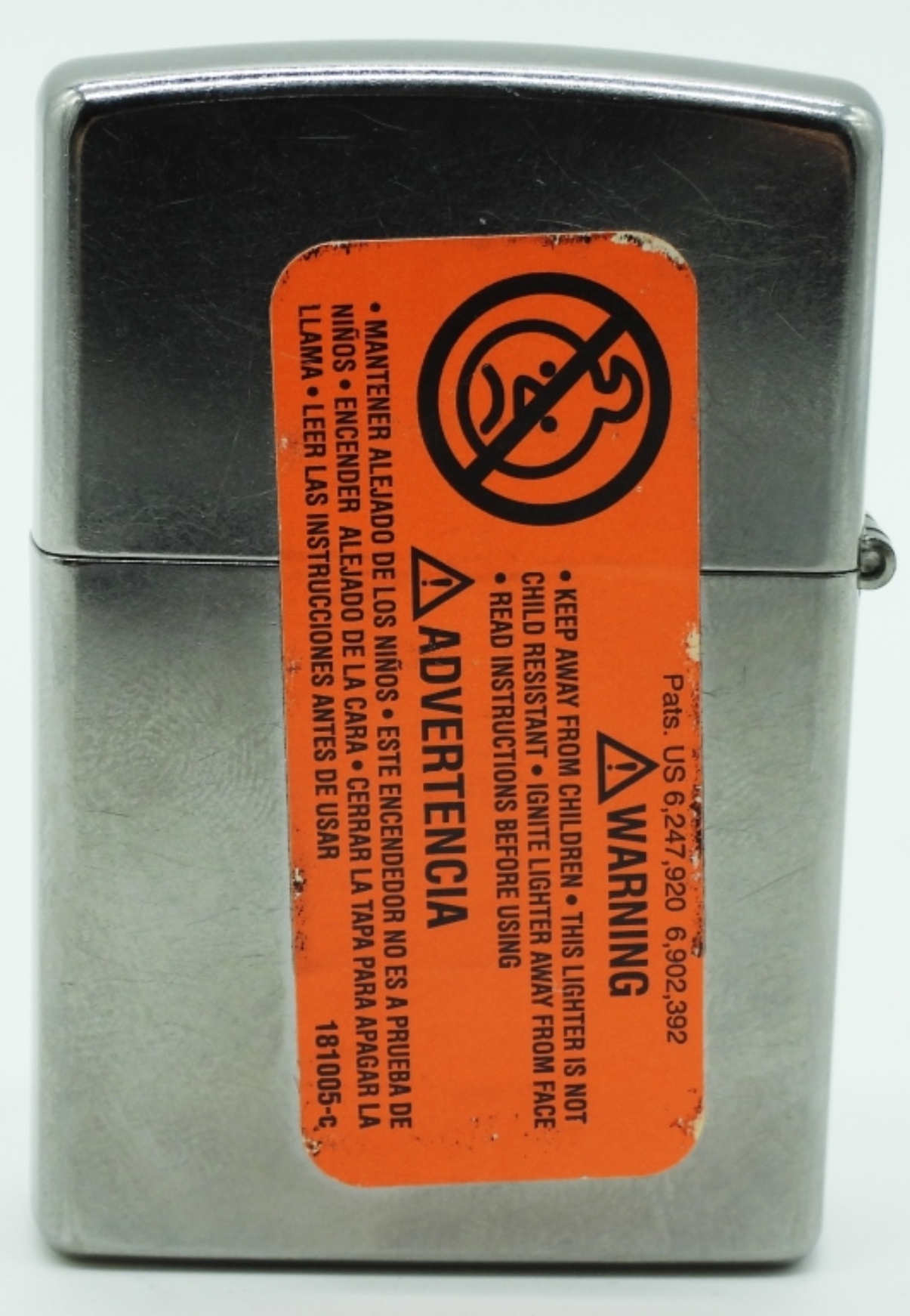 Does not come with a box. Sealed. The front of the Zippo has scuff marks from rubbing against other Zippos.