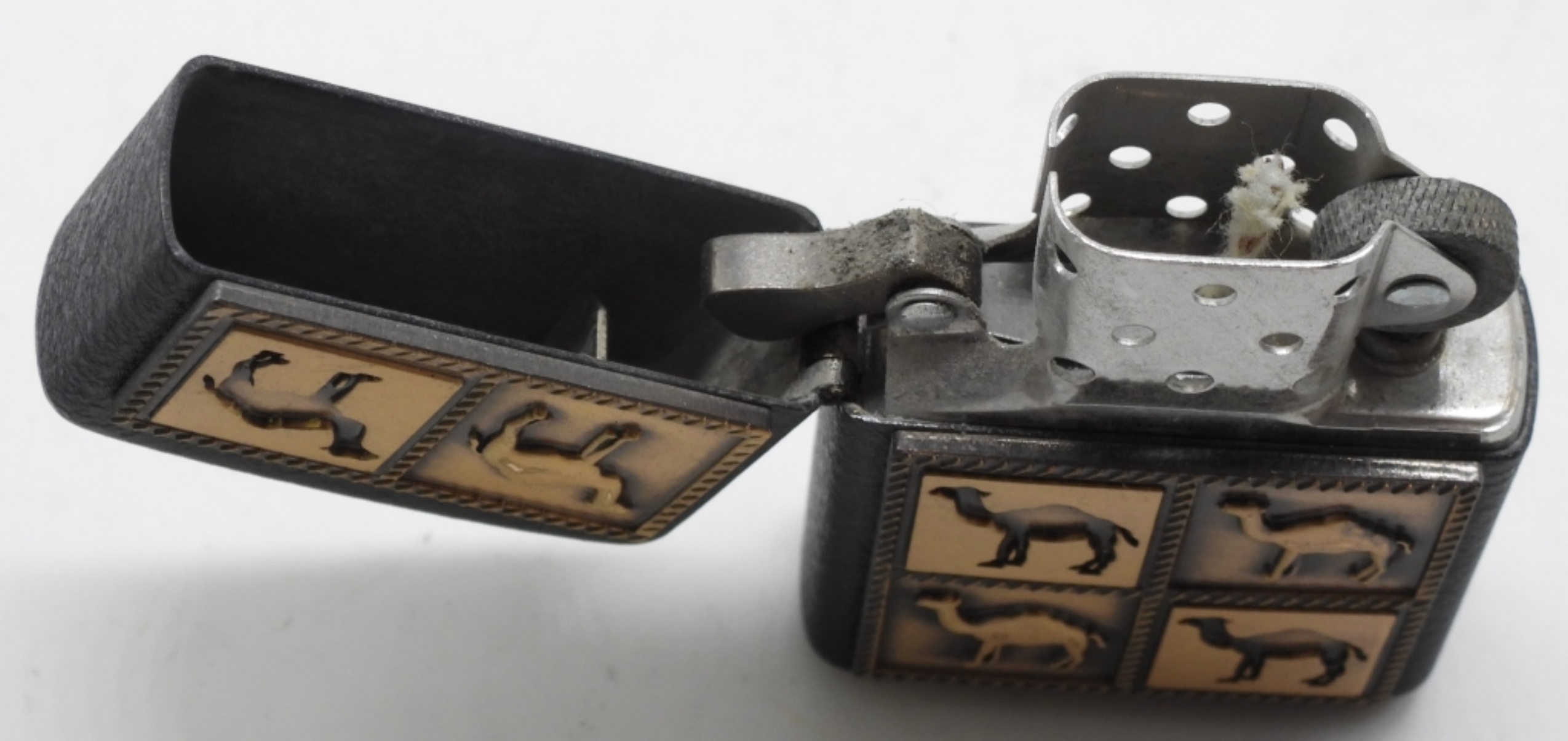 Unfired. Camel with brass emblems on the front. 1994. Comes in a box