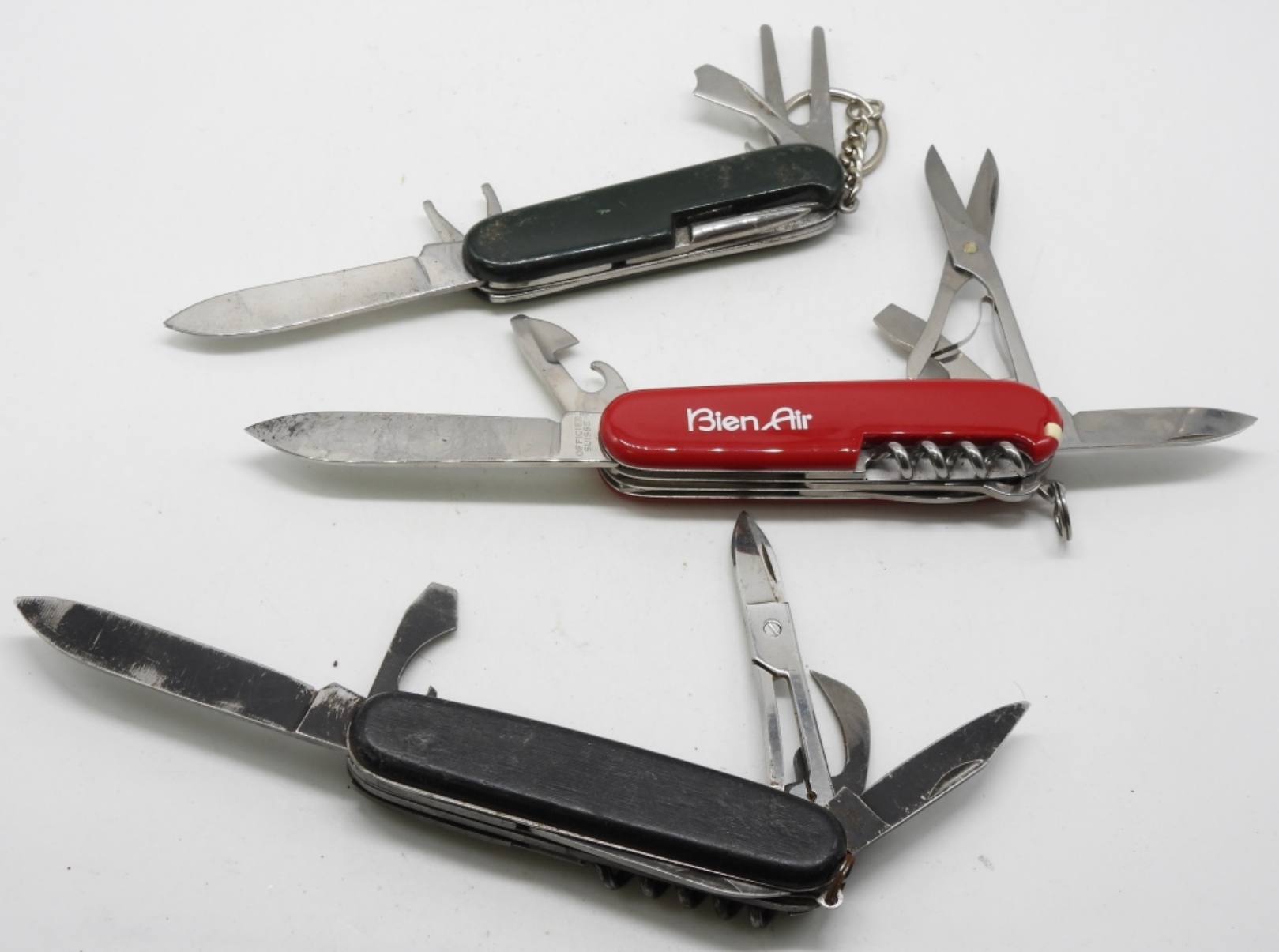 (1) Is a Swiss Army Knife classic red. (1) Green (1) Black