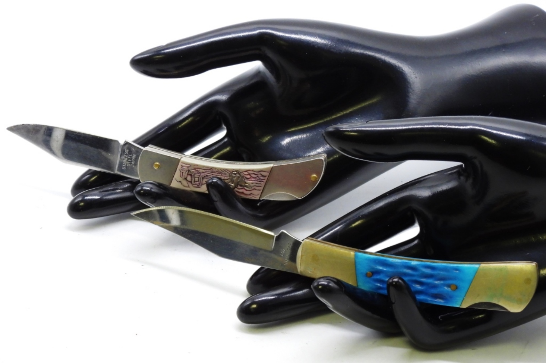 1) Steel Warrior (blue) 2) BH090 small (light purple with a western scene)