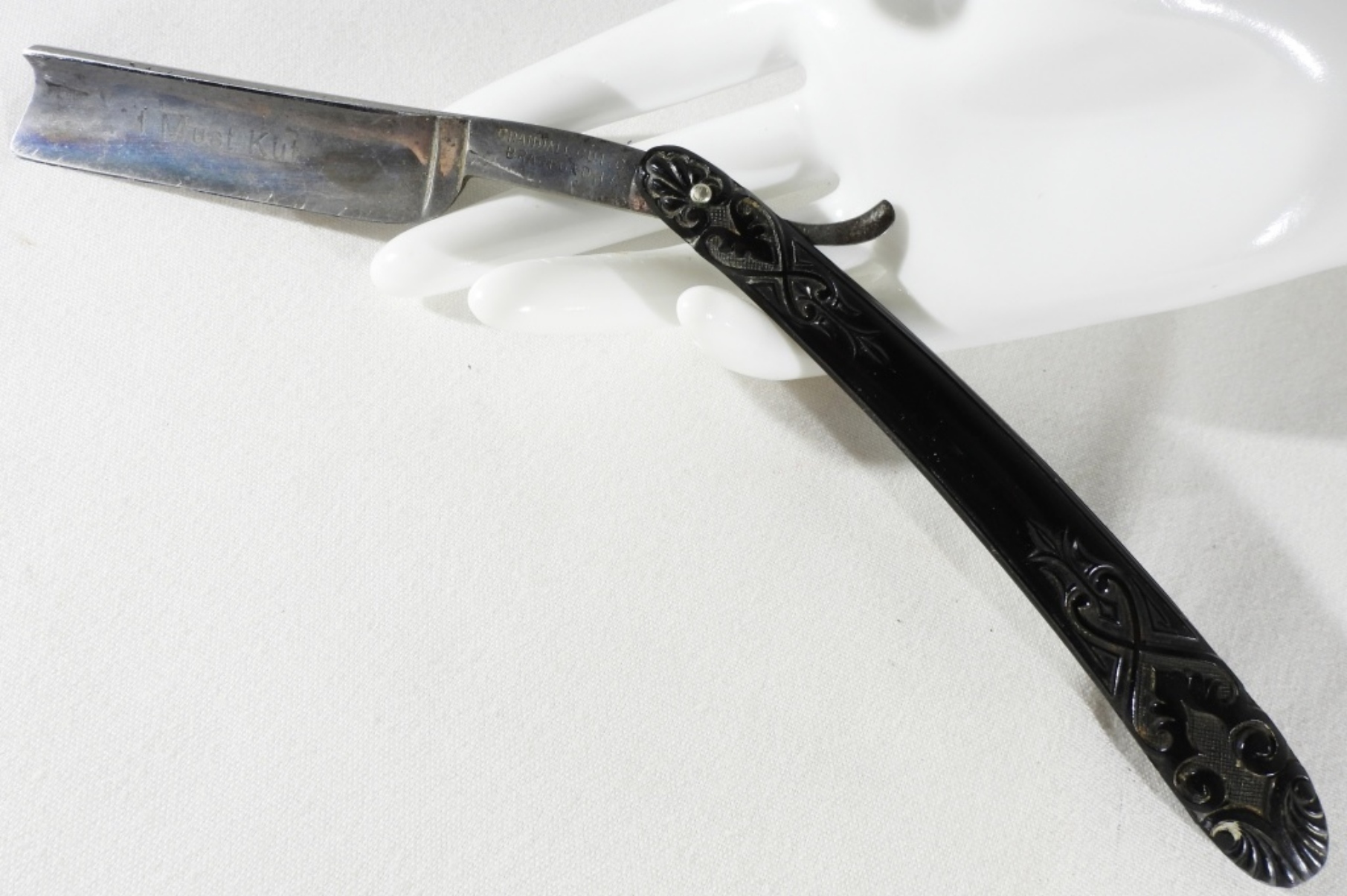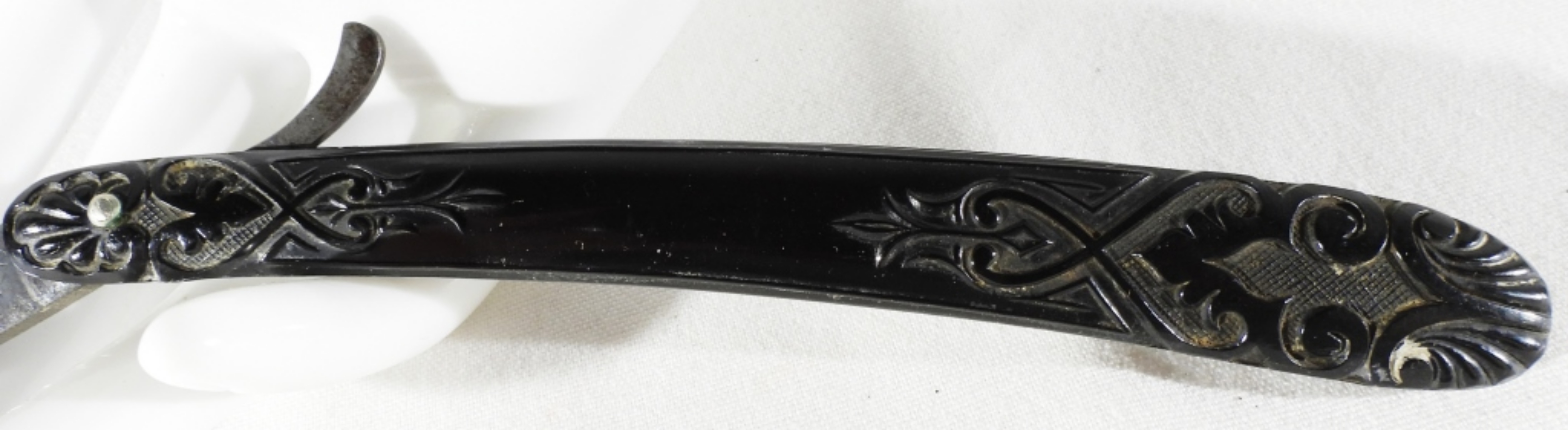 Germany Straight Edge Razor Ornate Celluloid Handle