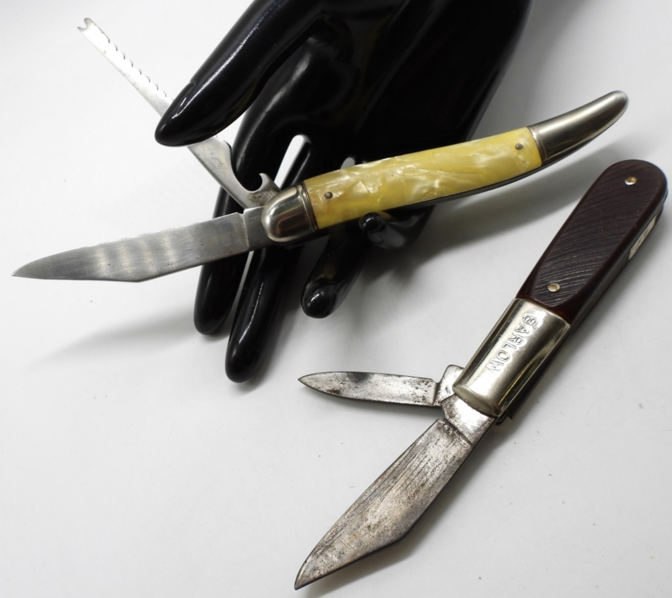 Fishing knife has 2 blades, barlow has 2 blades. Barlow is starting to rust a little
