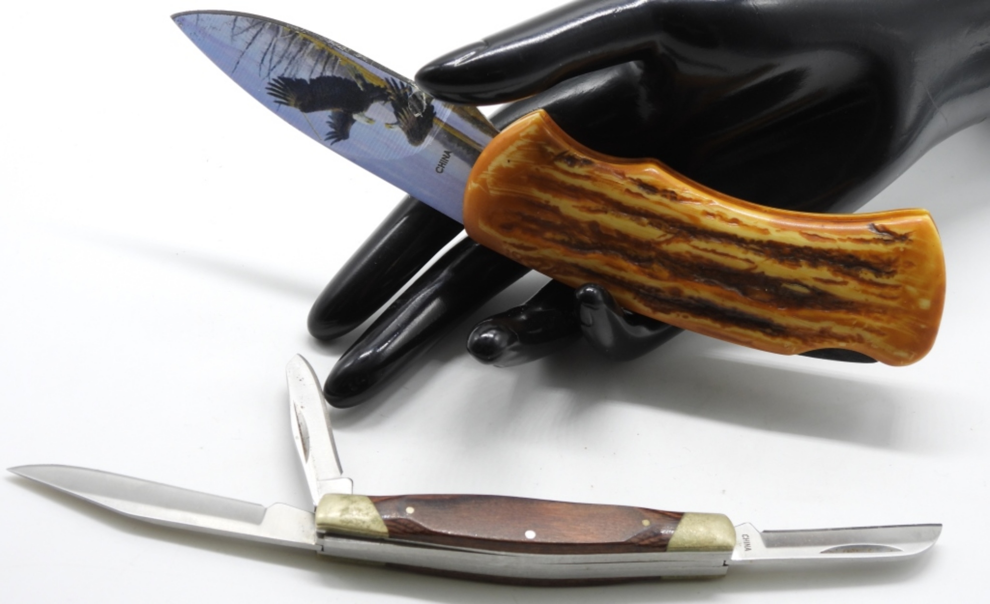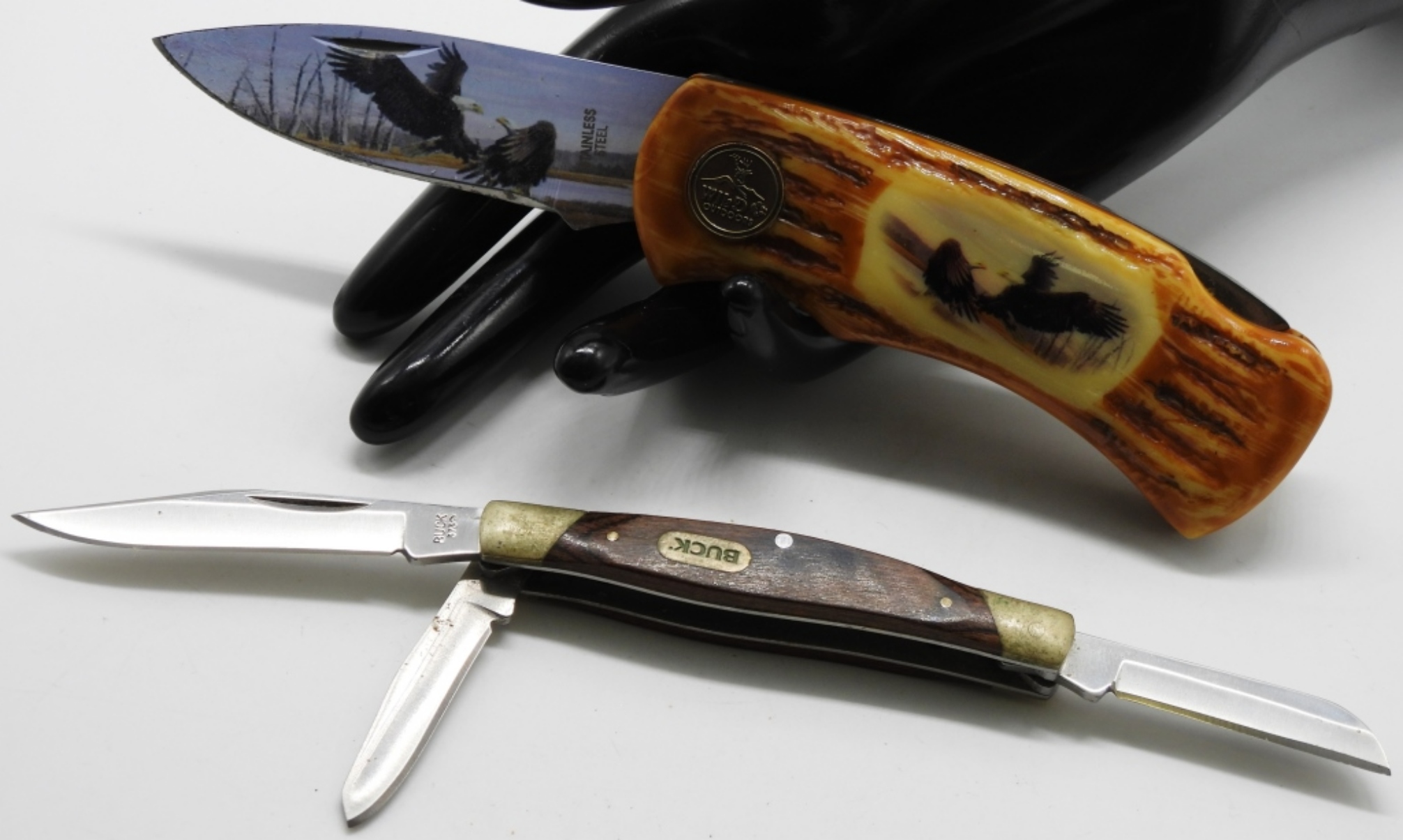 Outdoor is a lockback, in good condition. Buck 373 is a 3 blade pocket knife, no chips or rust