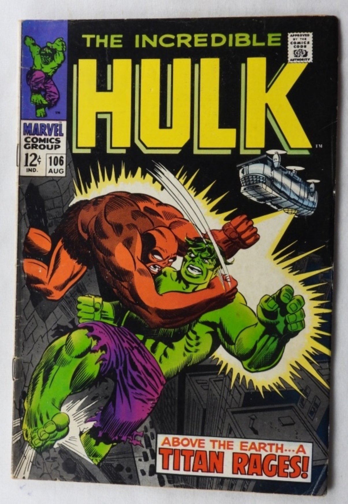 12-cent issue 1968. Creasing, bent corner on the bottom right. Normal wear from the years