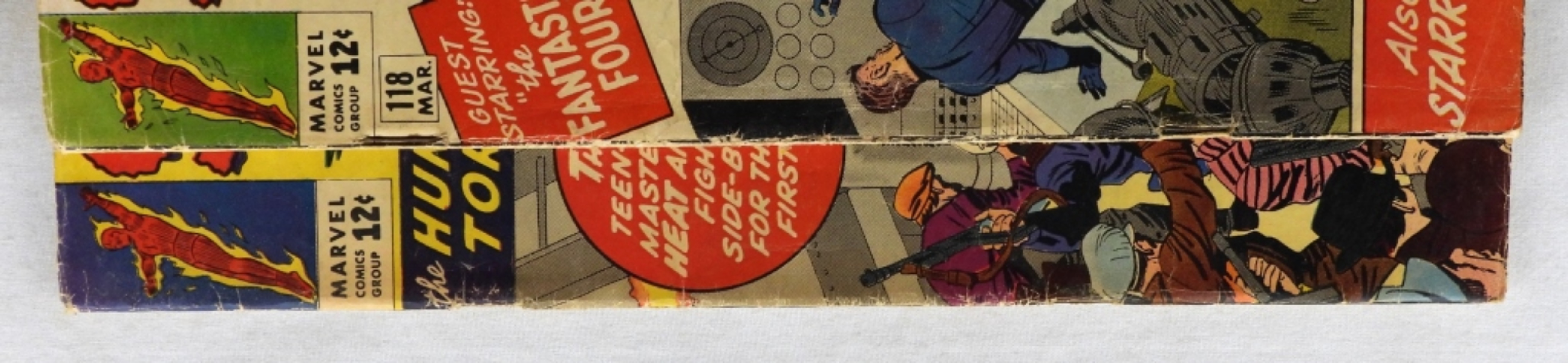 #118 & #120 G condition with creases and color fading, red ink on top of the pages. Both 12-cent issues