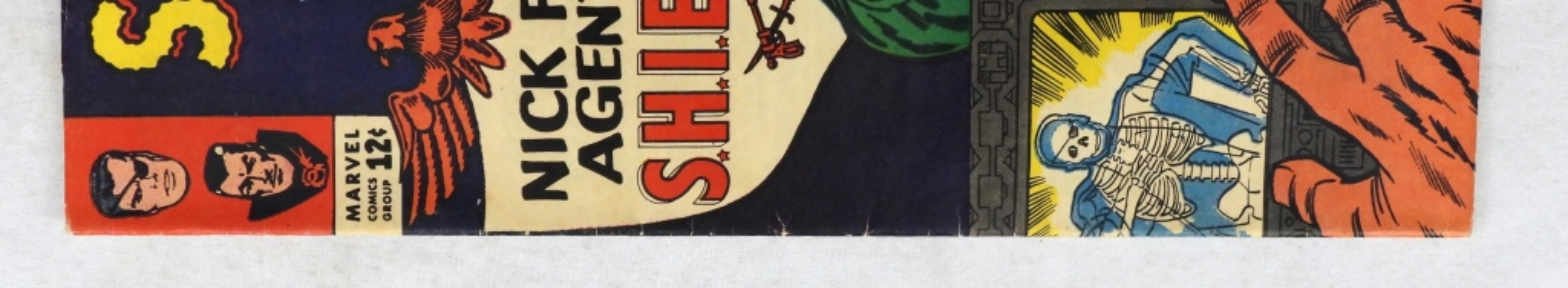 VG/G condition with some creases and red ink on the top of pages. First team appearance of S.H.I.E.L.D and Hydra. Nick Fury becomes an agent of S.H.I.E.L.D