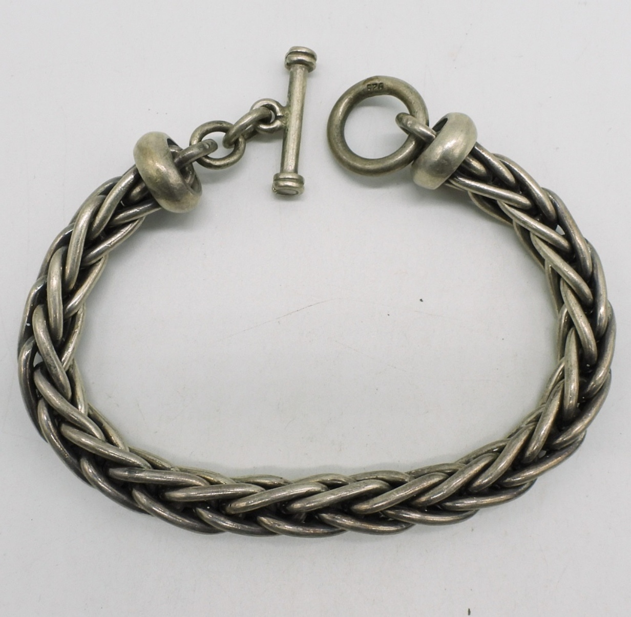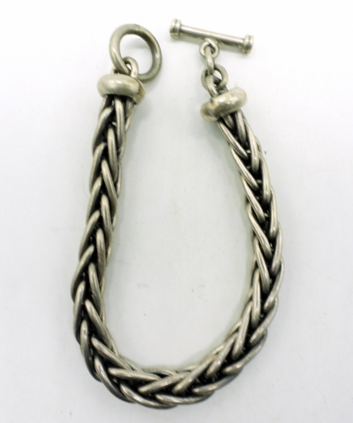 Heavy sterling wheat chain bracelet, toggle clasp. 9.5″ long. (62.4 dwt)