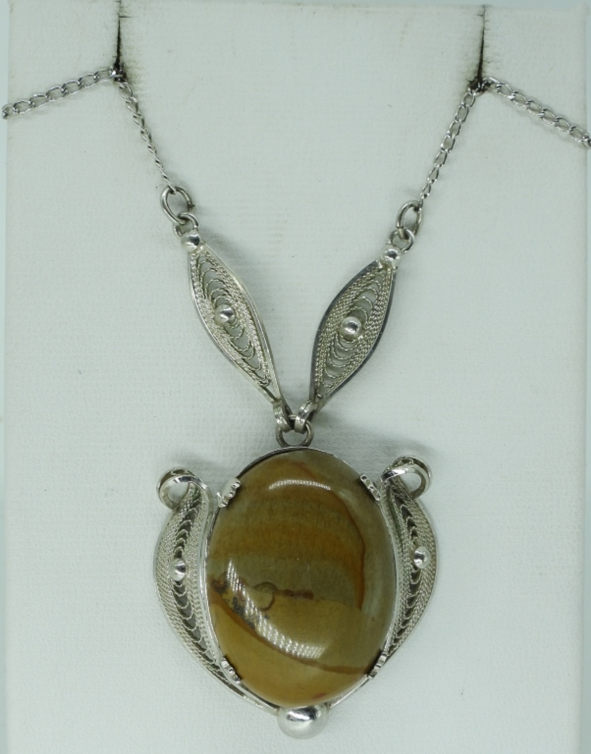 Vintage sterling Jasper gemstone necklace, 18″ long. Rings are size 6. (13 dwt)