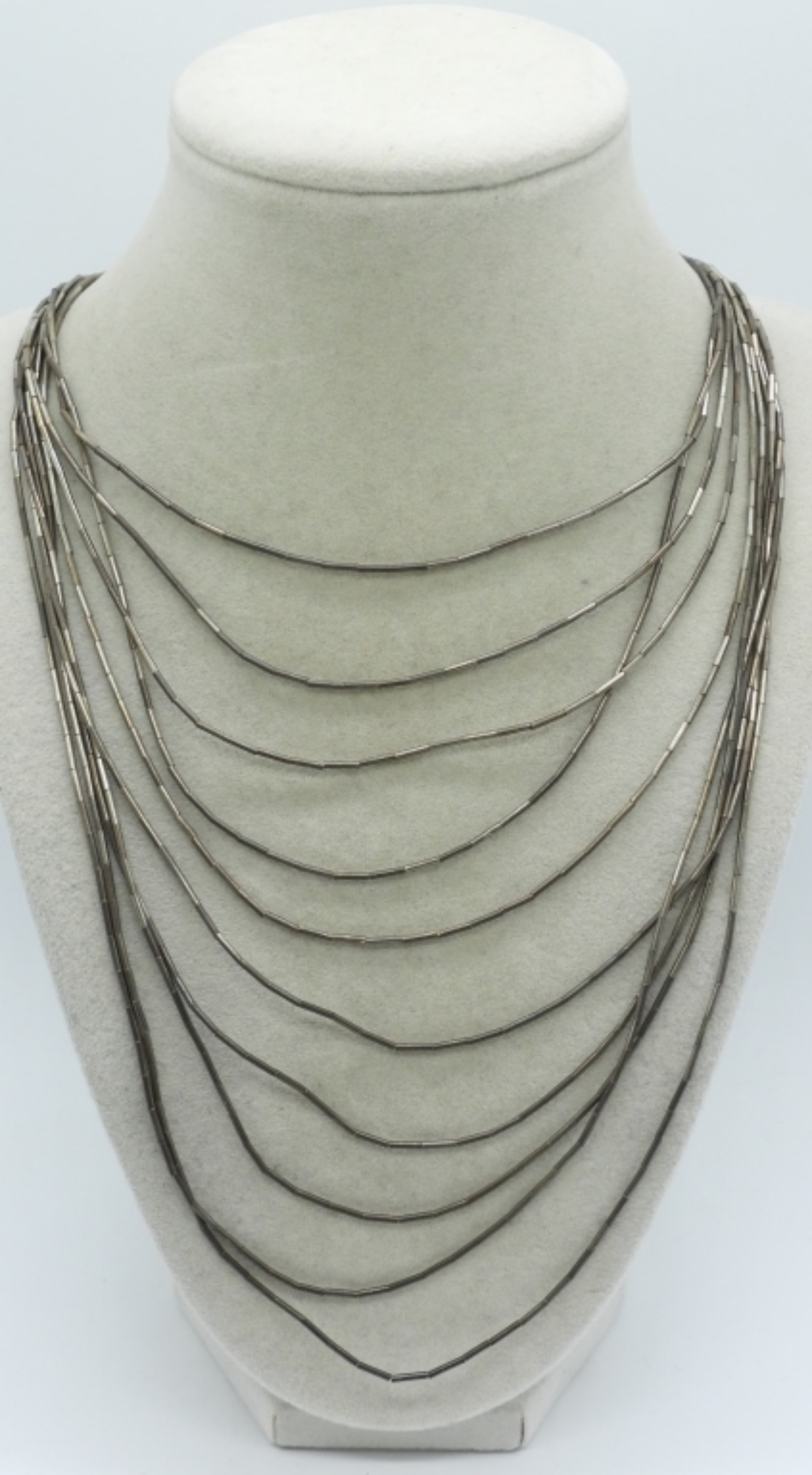 Ten strand liquid sterling necklace, 17″ long. (23 dwt)