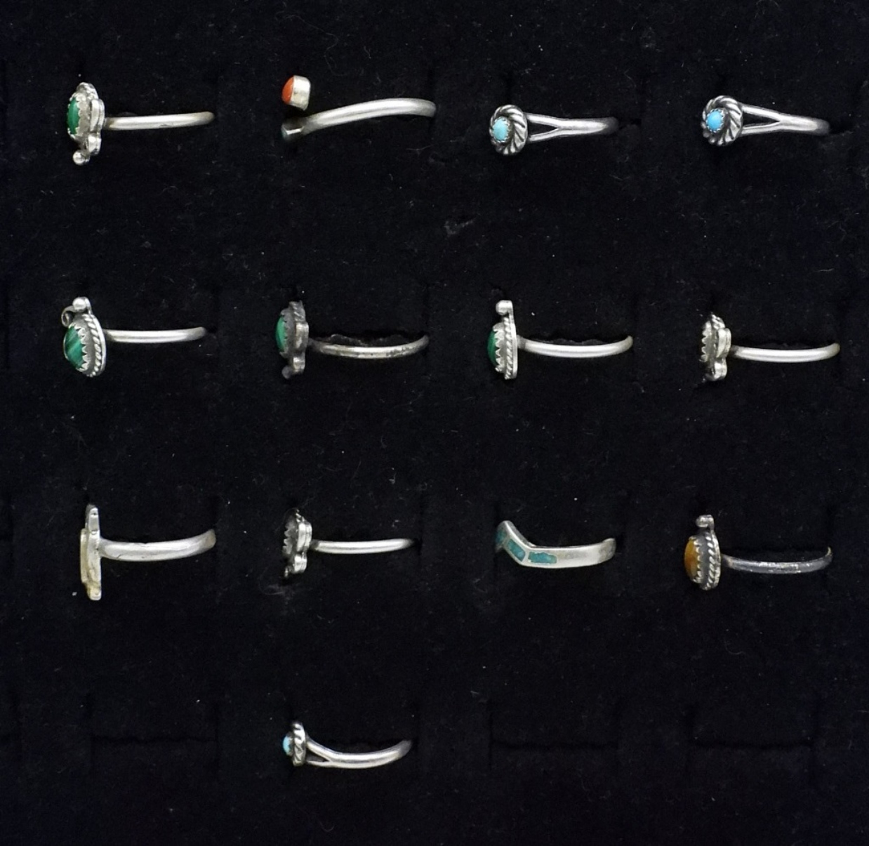 13 petite sterling turquoise rings, sizes 4 – 7. (12 dwt)
