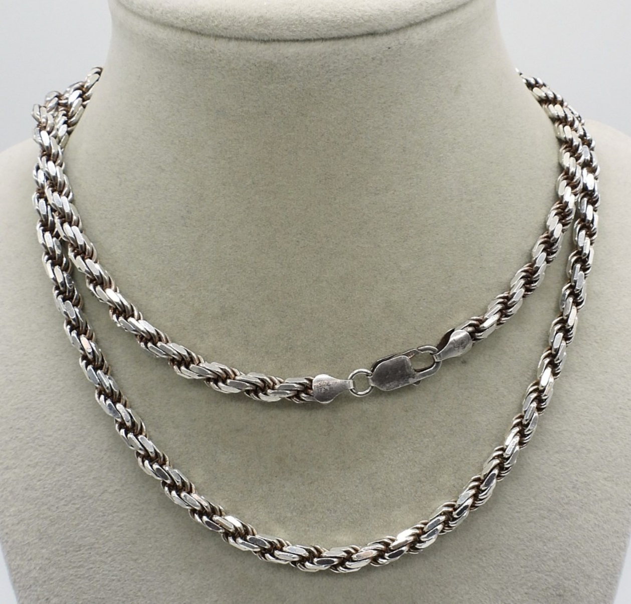 30 inch long, thick and heavy sterling rope chain. (47.2 dwt)