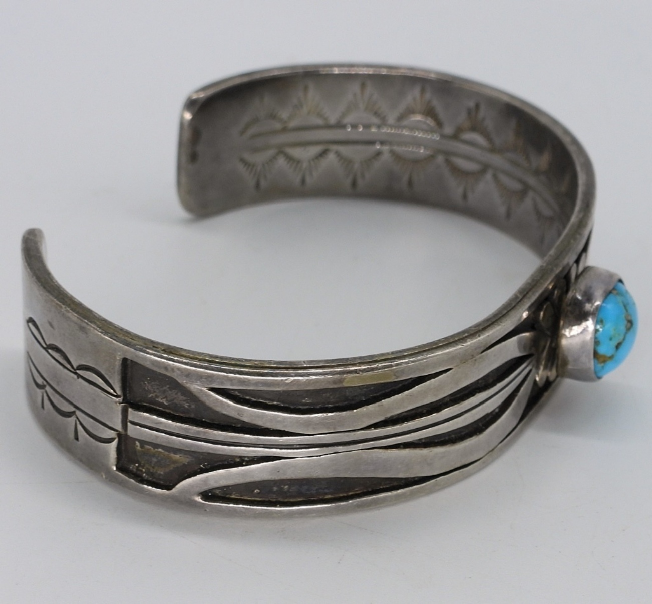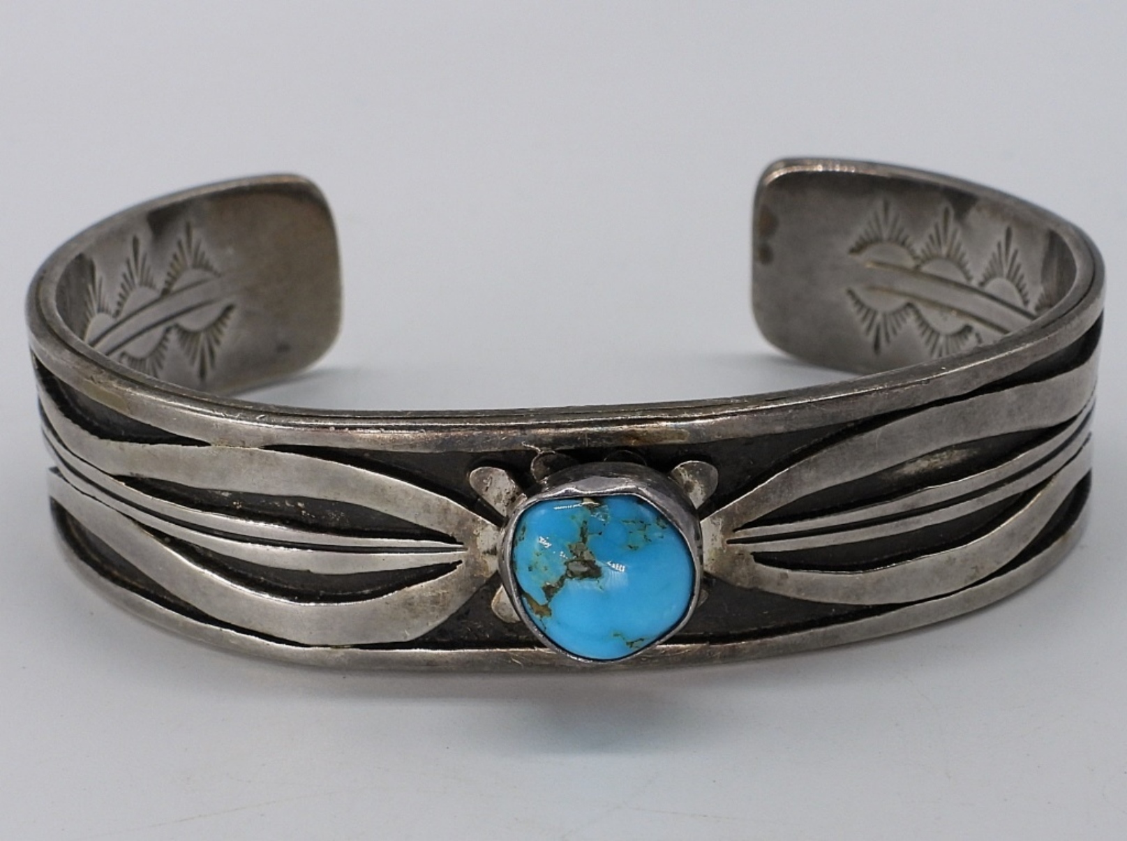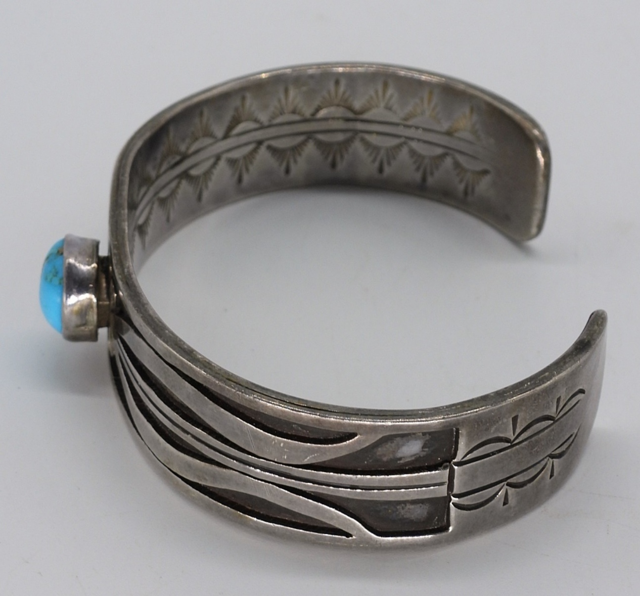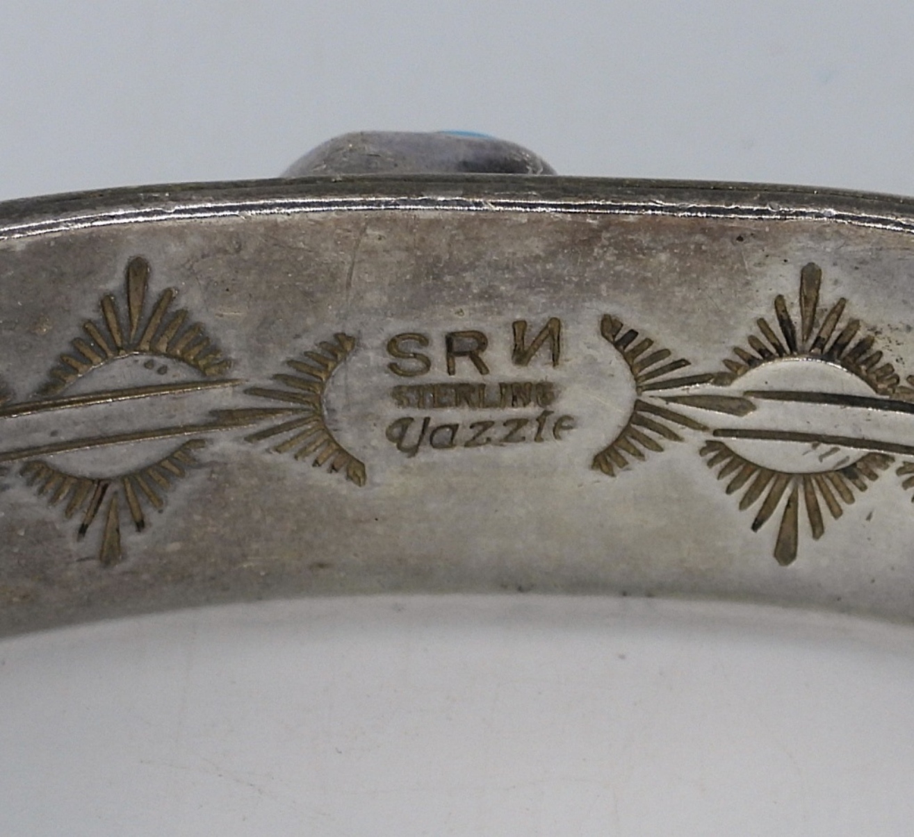 Sterling turquoise cuff bracelet, marked “SRM sterling Yazzie”. (29 dwt)