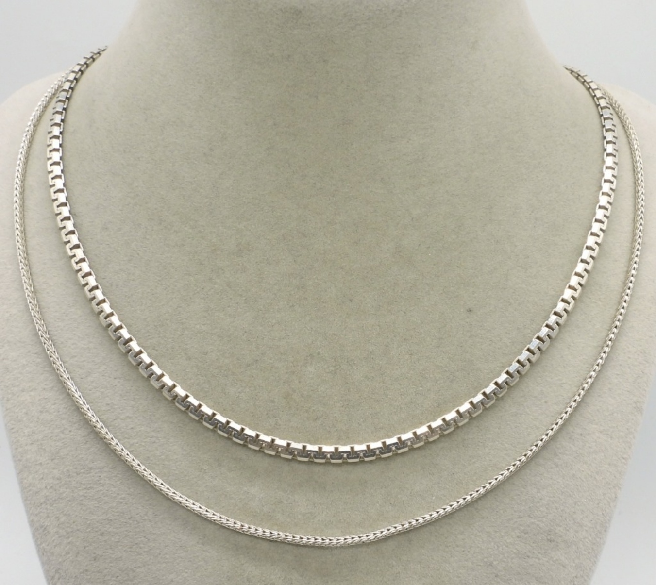 Two thick sterling chain necklaces, 20″ & 24″. (22.9 dwt)