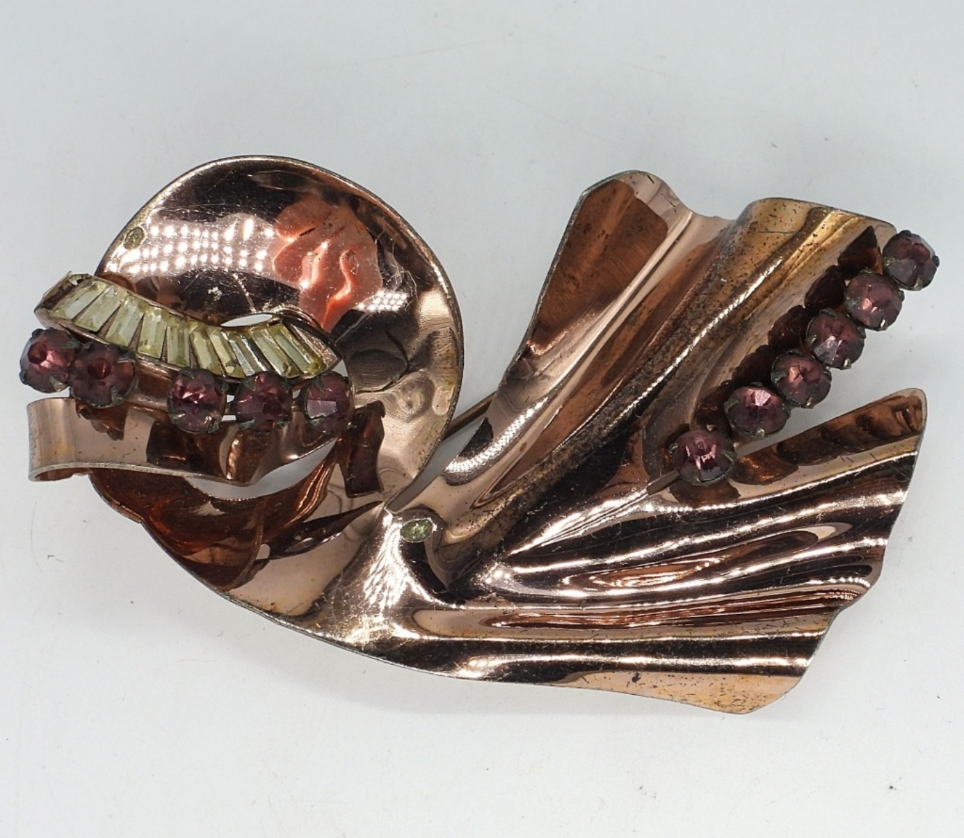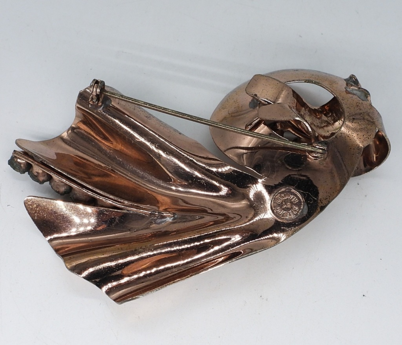 Vintage sterling brooch, “Sterling by Glamour” stamped on the back. 3.5″ x 2″. Rose Gold Toned. (18 dwt)