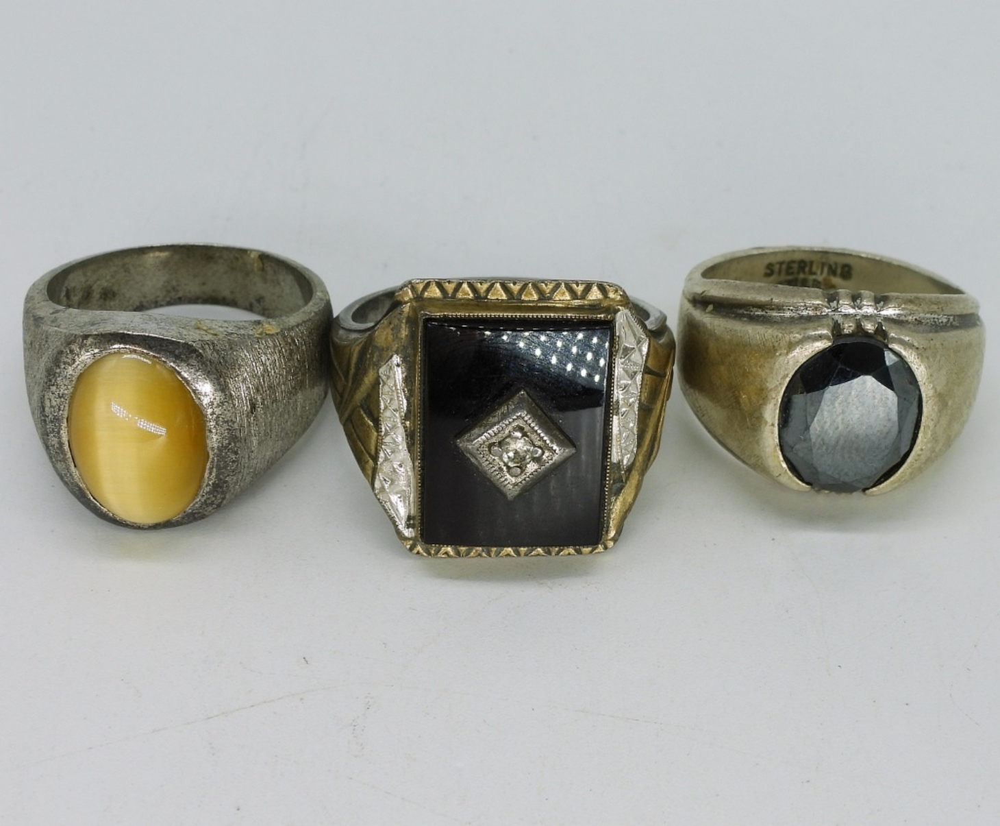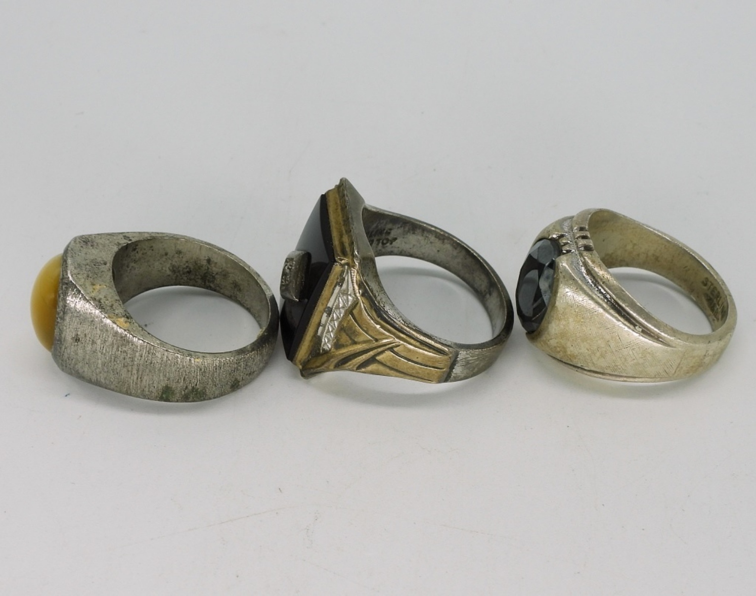 Three sterling vintage mens rings. Sizes 8.5, 9, 10.5. (20 dwt)