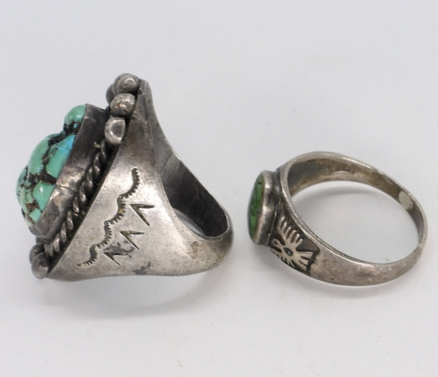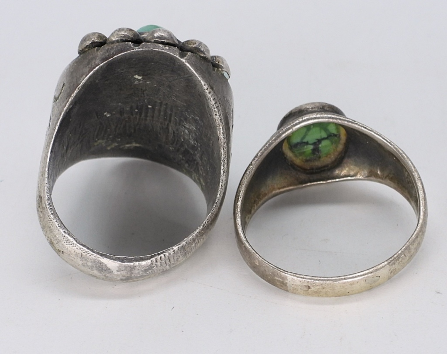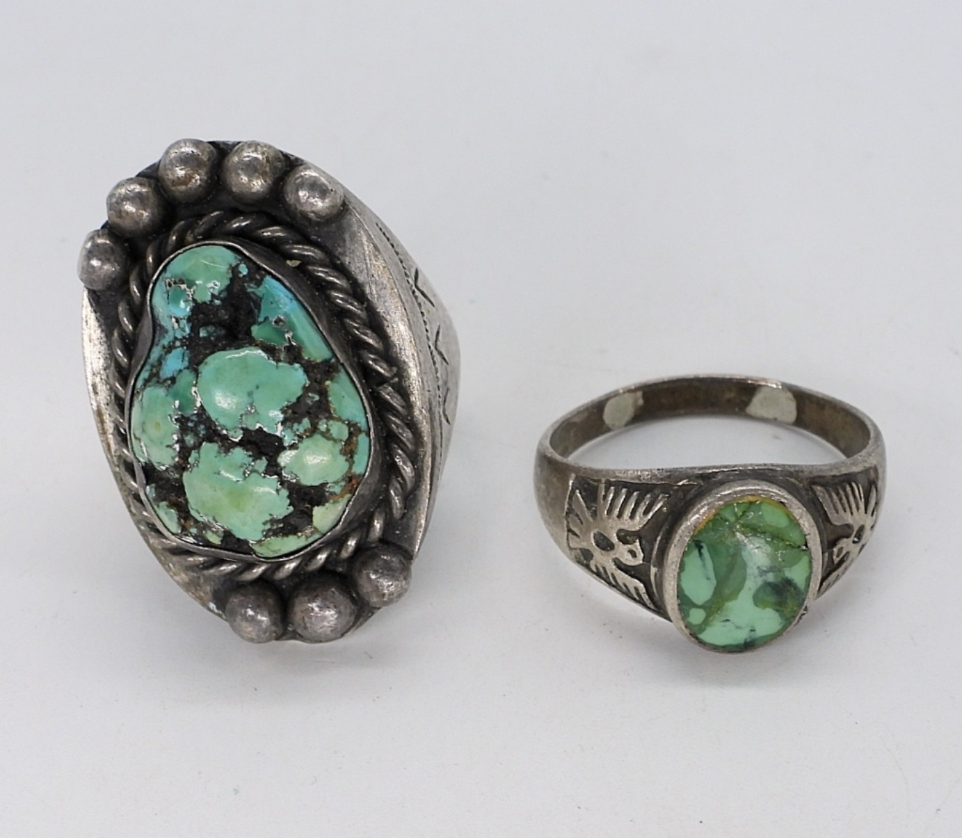 Two sterling southwest turquoise rings, sizes 10 & 12. (22 dwt)