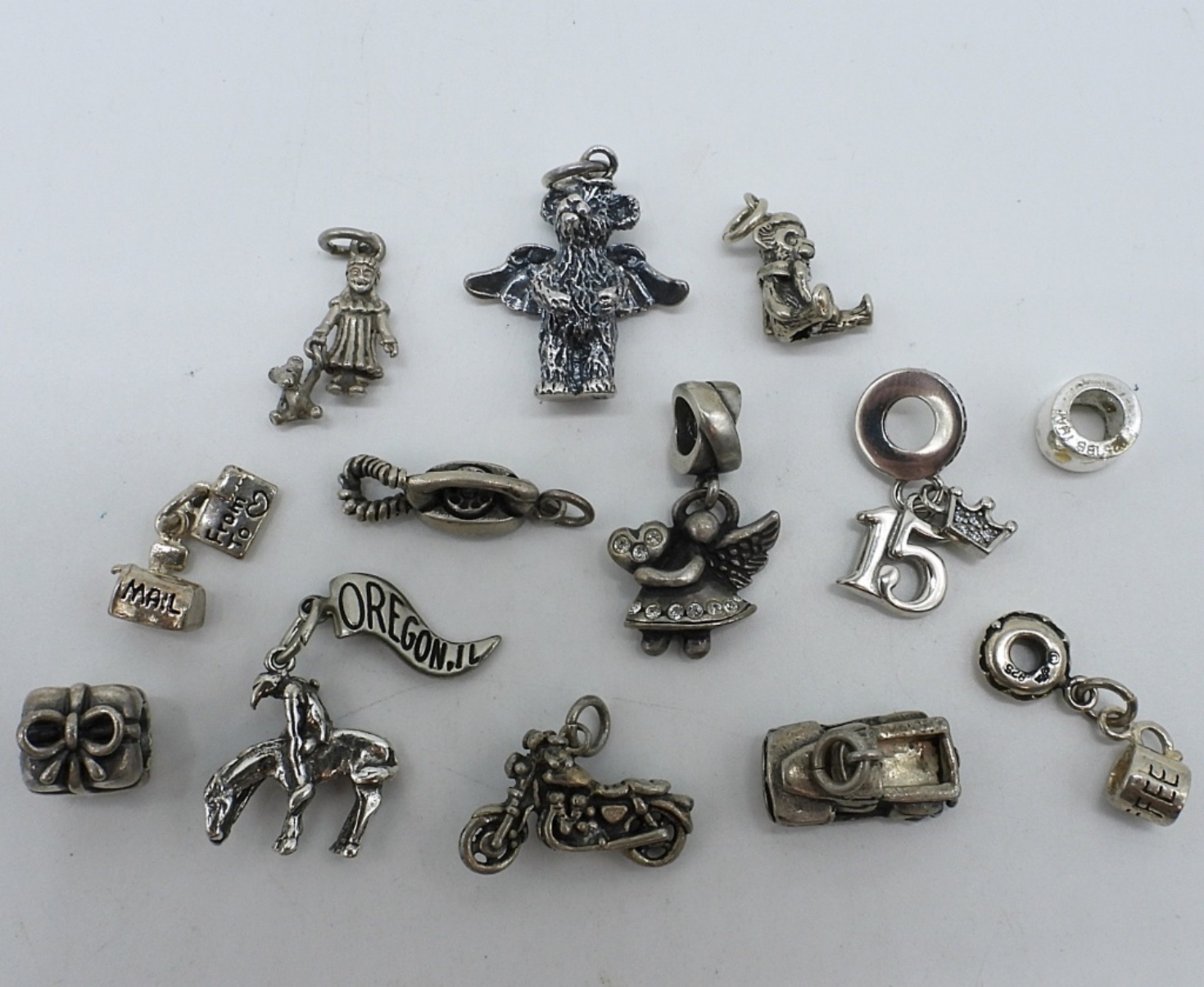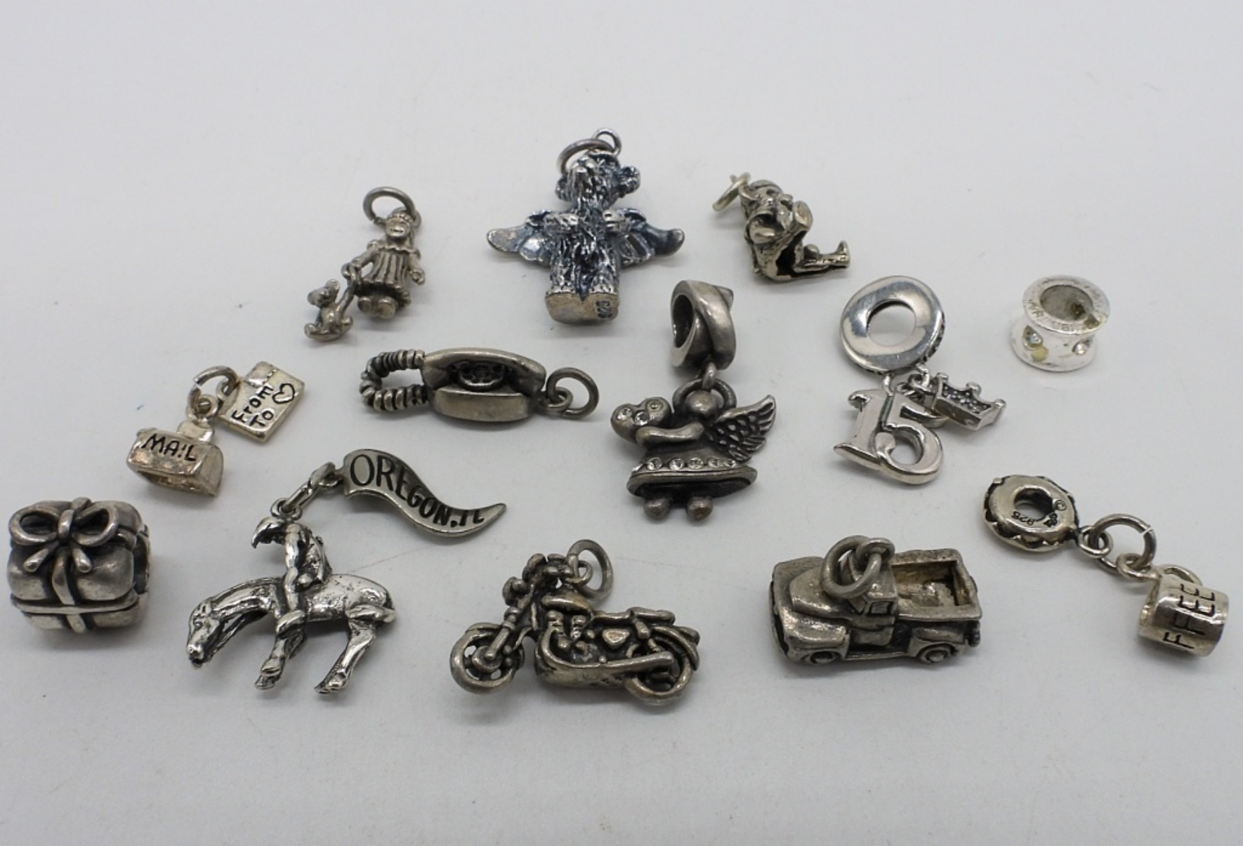 Thirteen sterling charms for modern and vintage charm bracelets. (20.3 dwt)