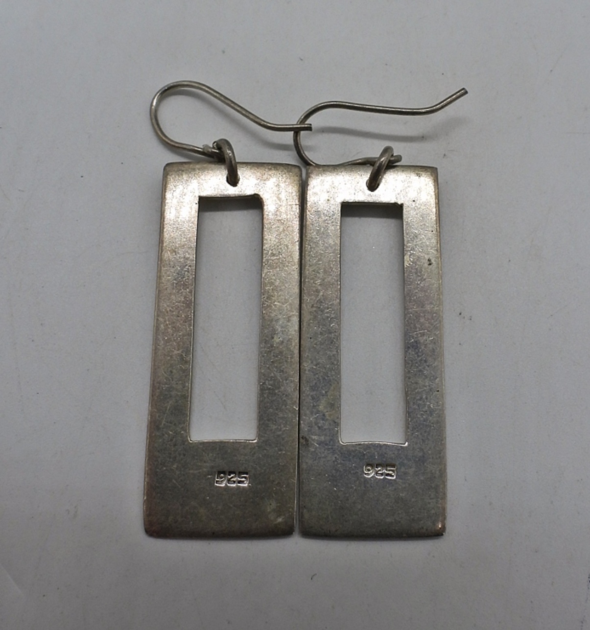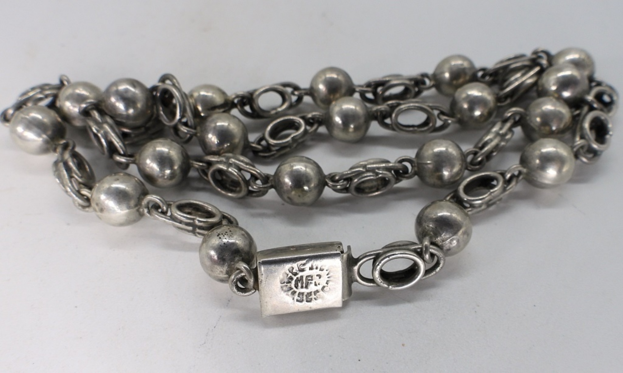 Vintage Mexico sterling necklace, 16″ long. Pierced sterling earrings, 1.5″ long. (16.9 dwt)