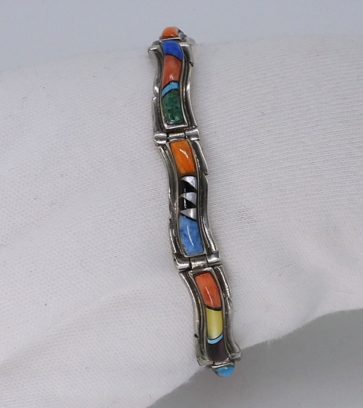 Vintage Navajo, multi gemstone bracelet, 7″ long. See photos for marking. (13 dwt)