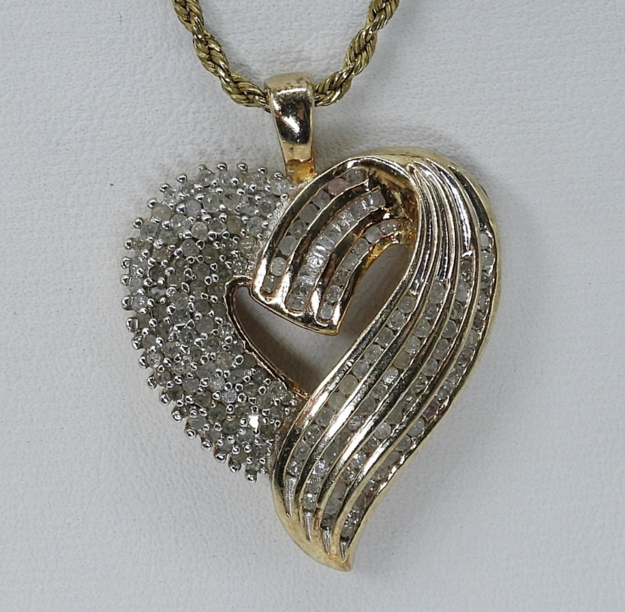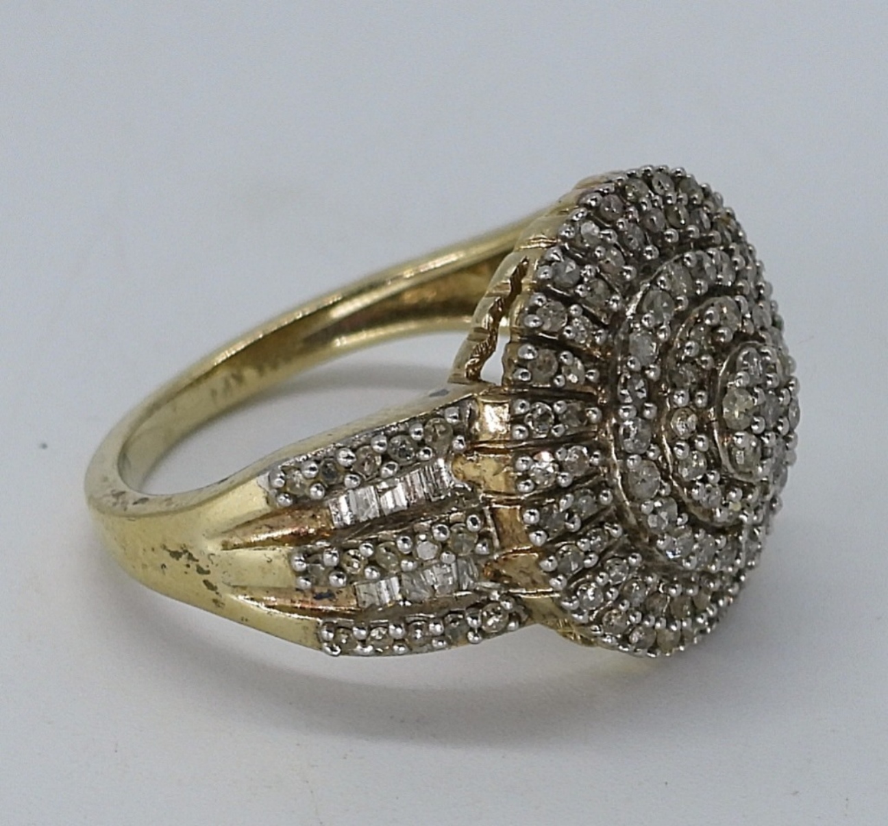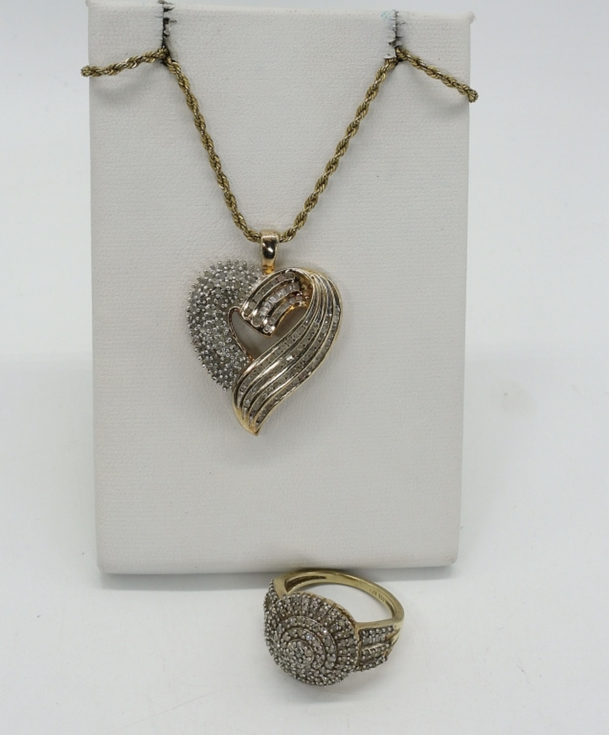 Gold tone sterling necklace and ring with Diamonds (tested). Necklace is 22″ long. Ring is size 7. No total carat weight available. (9 dwt)