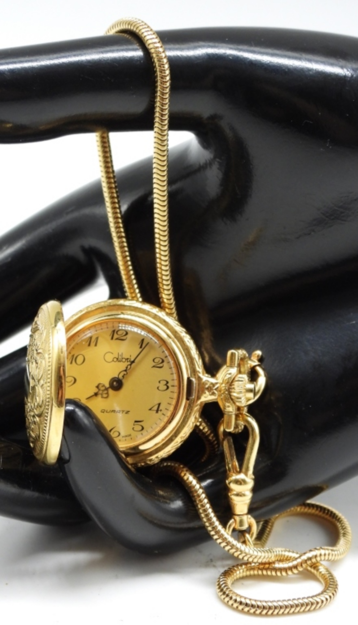 Requires a battery to function. Has a yellow gold-colored case and a matching dial with Arabic numerals. Watches are not verified, authenticated, or tested in running condition unless specified.