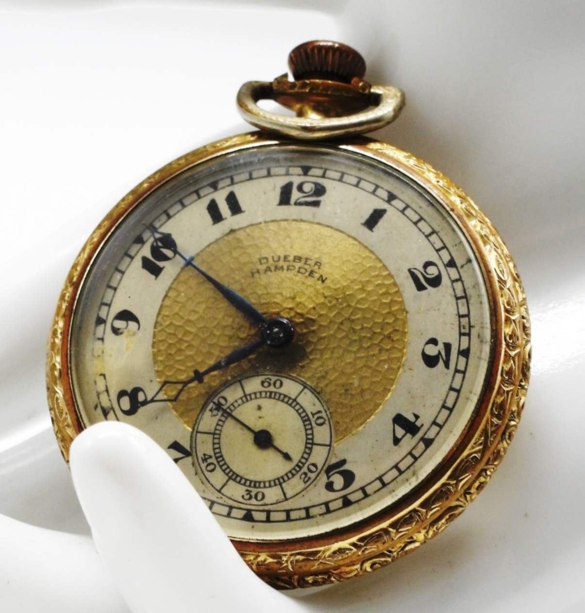 This watch features a silver and gold colored dial with Arabic numerals and a sub-dial. Watches are not verified, authenticated, or tested in running condition unless specified.
