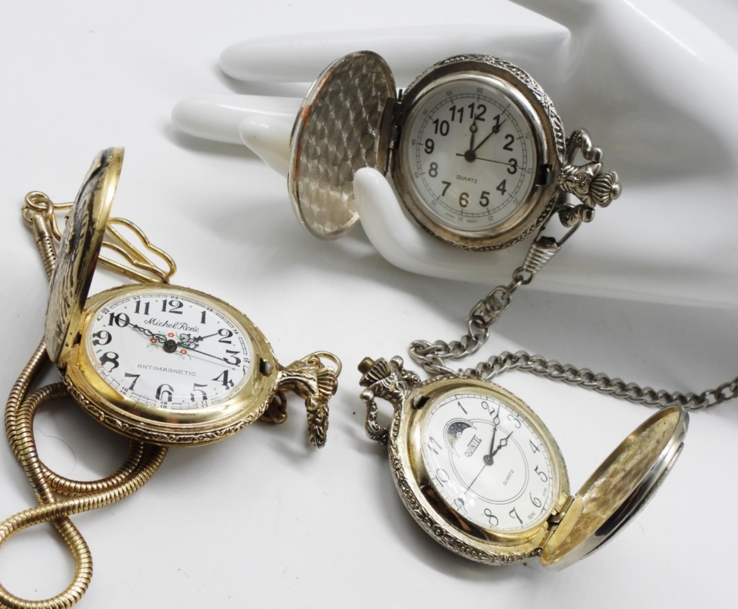 None works. ((1) is gold tone. (2) Are silver-tone.) Watches are not verified, authenticated, or tested in running condition unless specified.