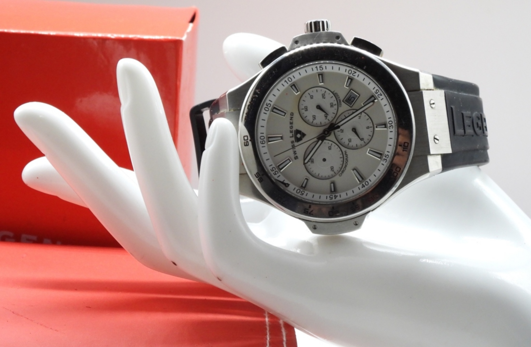 Comes with its original box. Water resistant, 10 ATM/ 330 Feet. One of the mini hands is broken and is moving, which looks like it can be repaired. Watches are not verified, authenticated, or tested in running condition