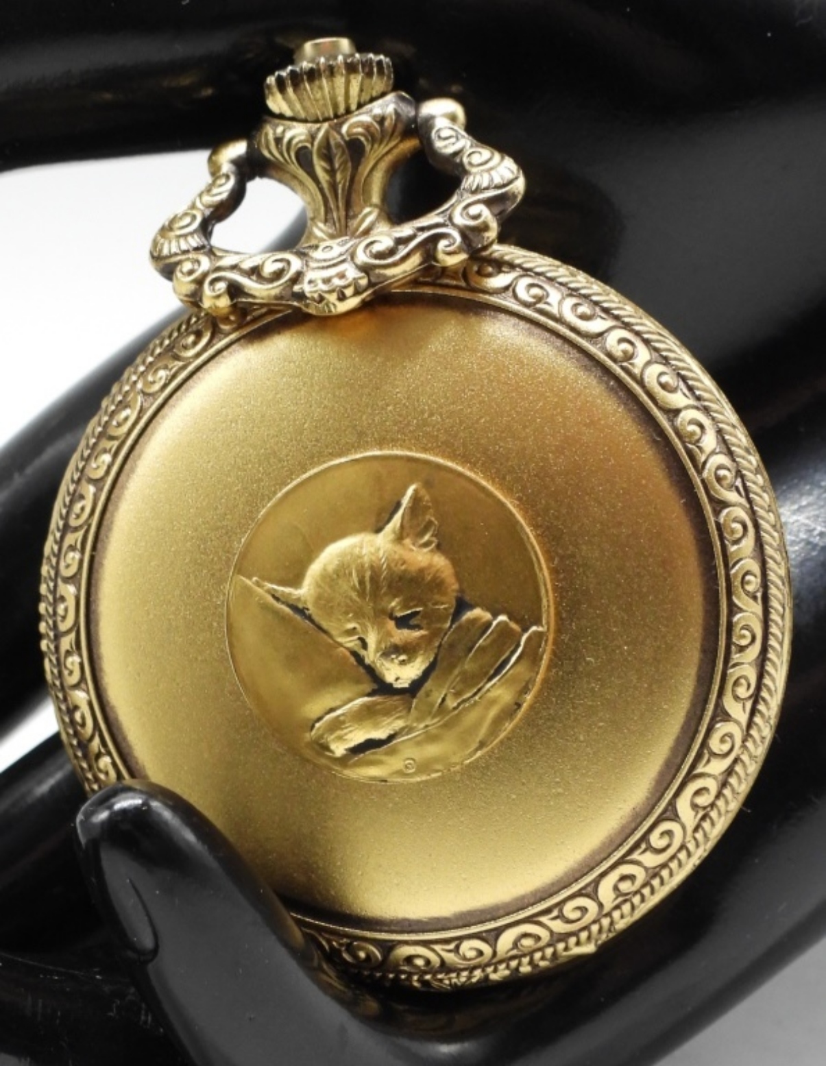Railroad-Themed. The watch case has a sleeping kitten tucked in. Watches are not verified, authenticated, or tested in running condition unless specified.