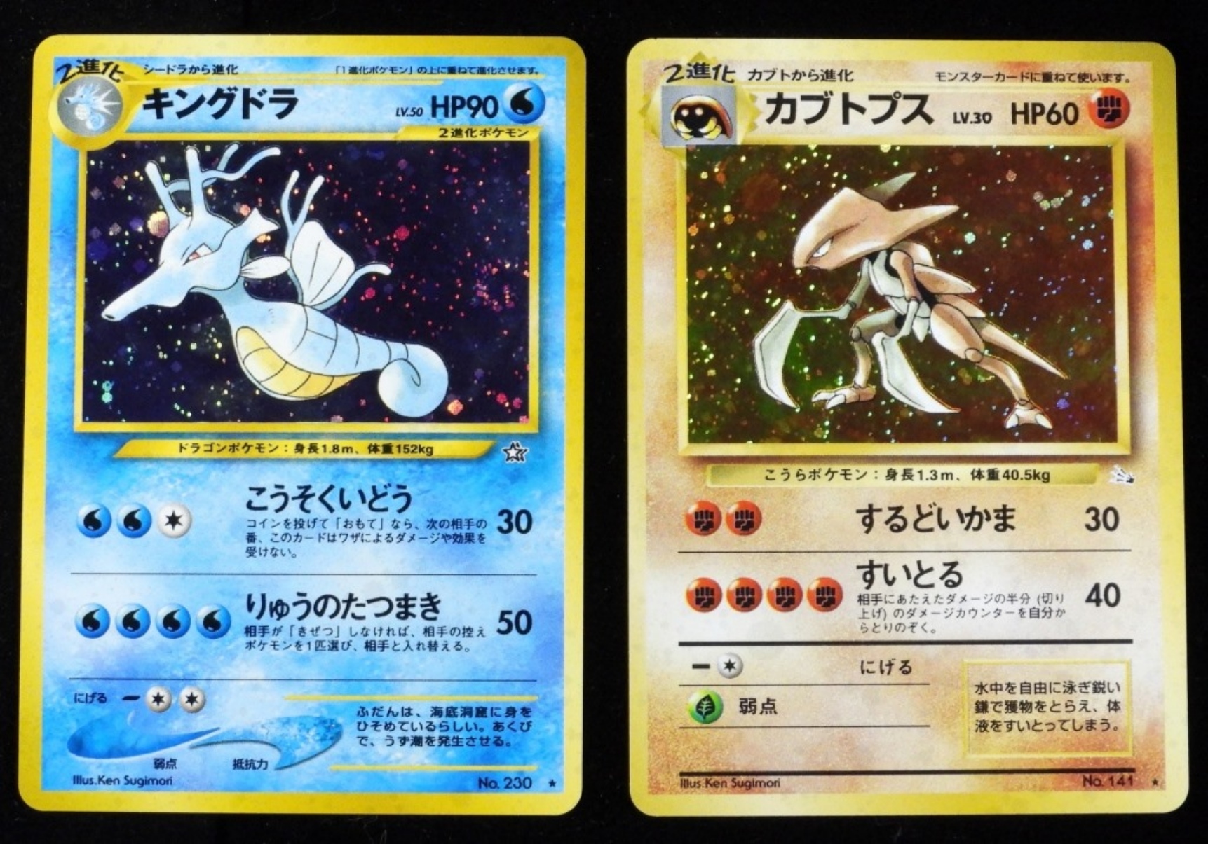 1- Kingdra #230 Holo, rare HP90. 1- Kabutops #141 Holo, rare HP60, stage 2