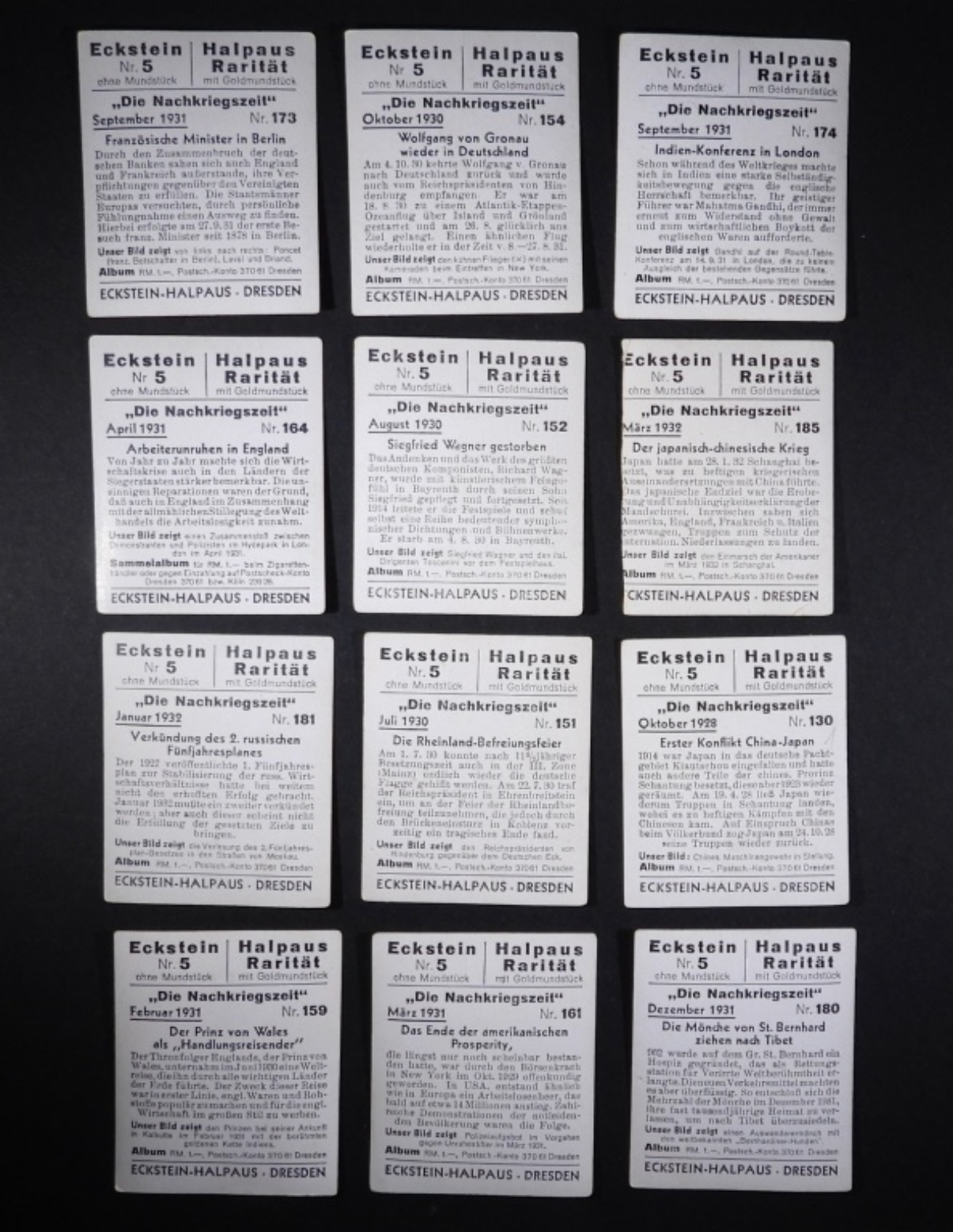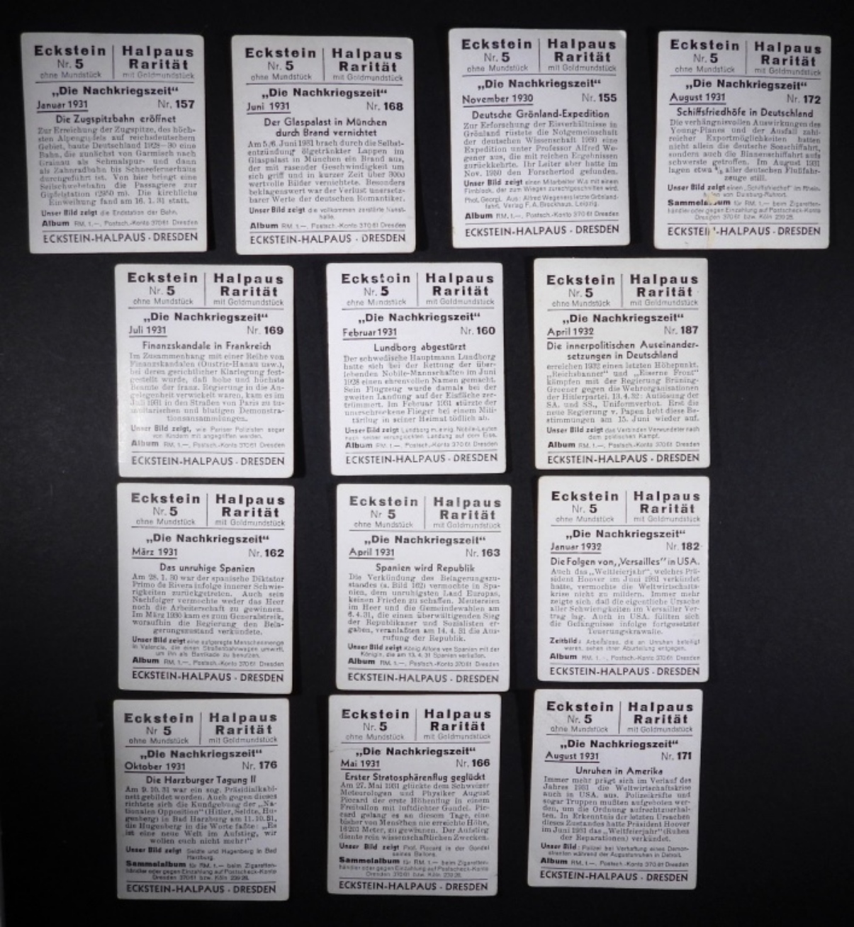 “DIE NACHKRIEGSZEIT” Historical Tobacco Cards 1934