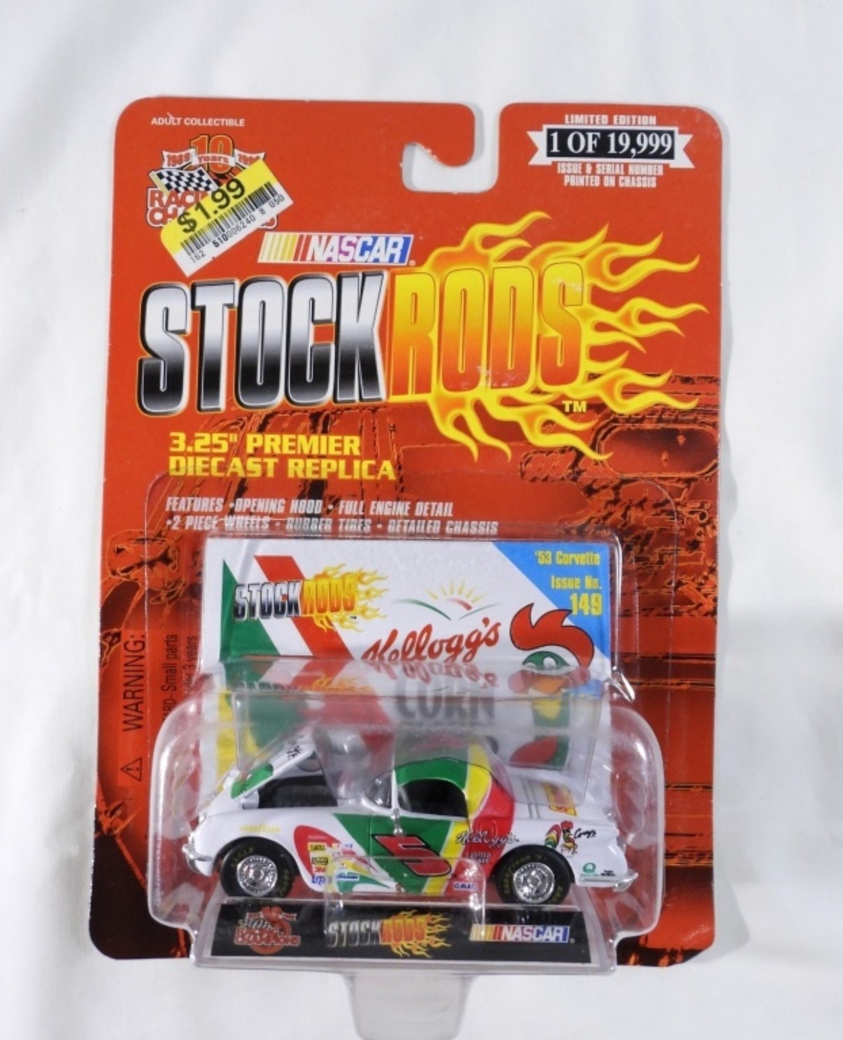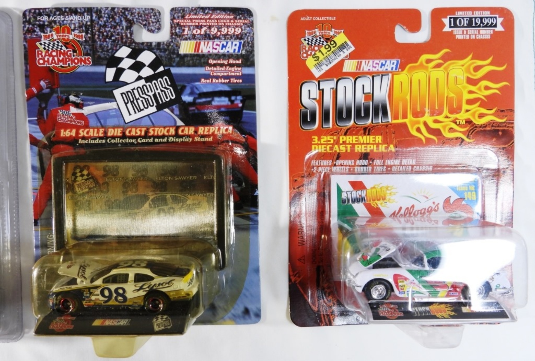 4 Nascar Collectors Cara. First car is A Nascar 1:64 Scale Die-Cast replica Ernie Irvins car with a 3-D Collectors Card made in 1999 (box is still in good condition). Second car NASCAR 1:64 Scale Die Cast Stock
