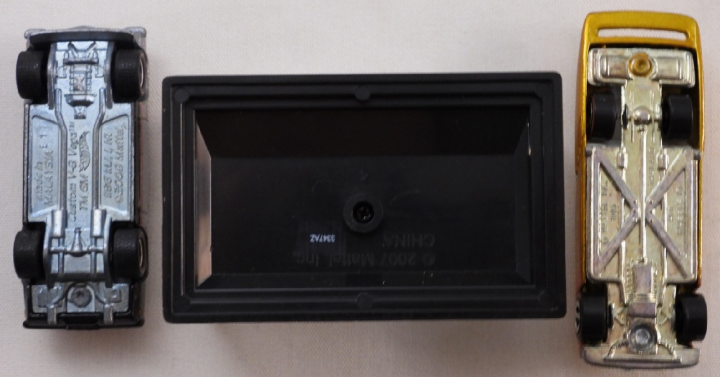 1) Is in a hard plastic case ’67 Mustang. 2) Is a Red Line Boulevard Underdogs custom V-8 Vega Real Riders. 3) ’49 Merc (hardnose)