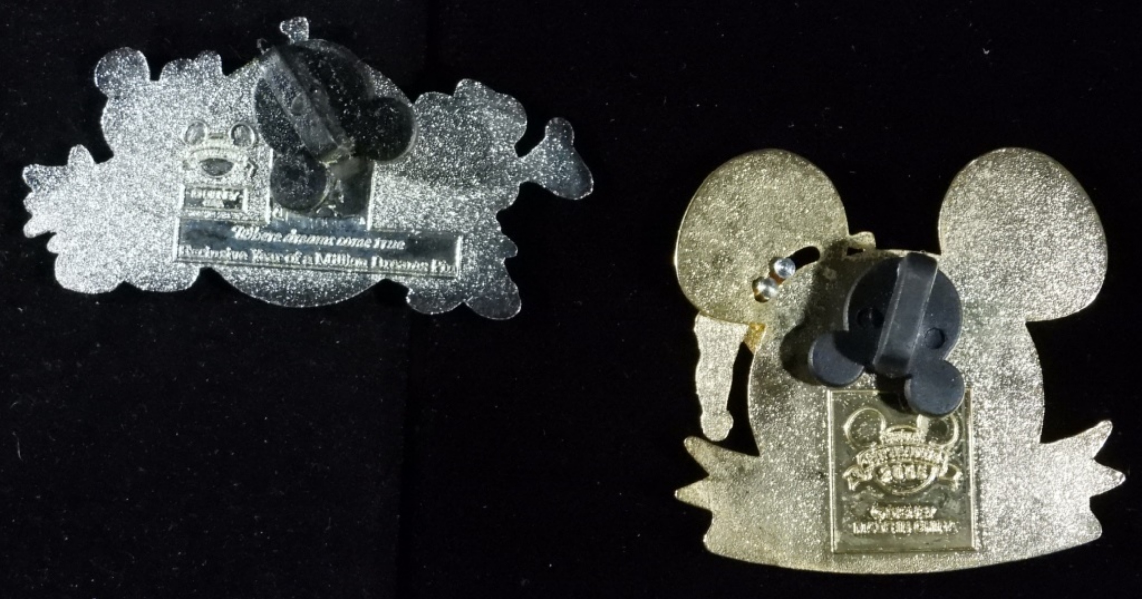 Both from the Official Pin Trading Disney. 1- Disney castle with moving Tinker Bell 2005. 1- The Year of a Million Dreams pin.