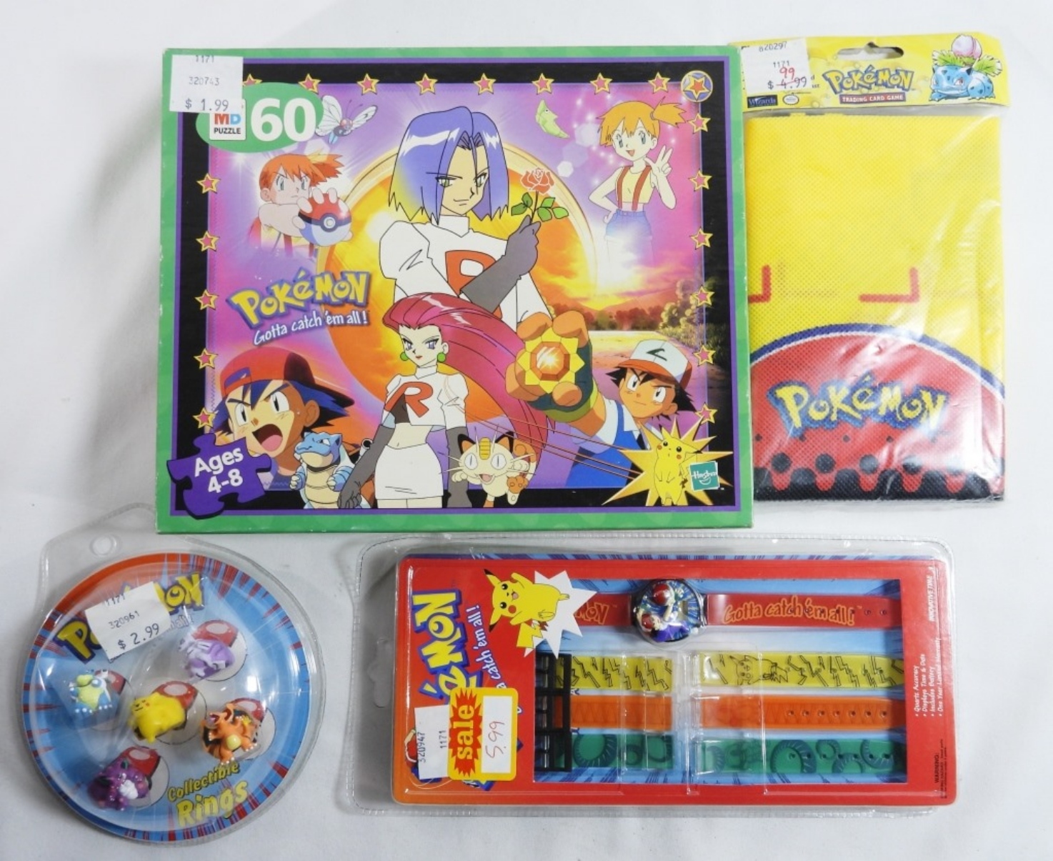 1) Collectible Rings (New), Watch with four bands (New), Mat or flag (New), Unopened 60 pc Puzzle.
