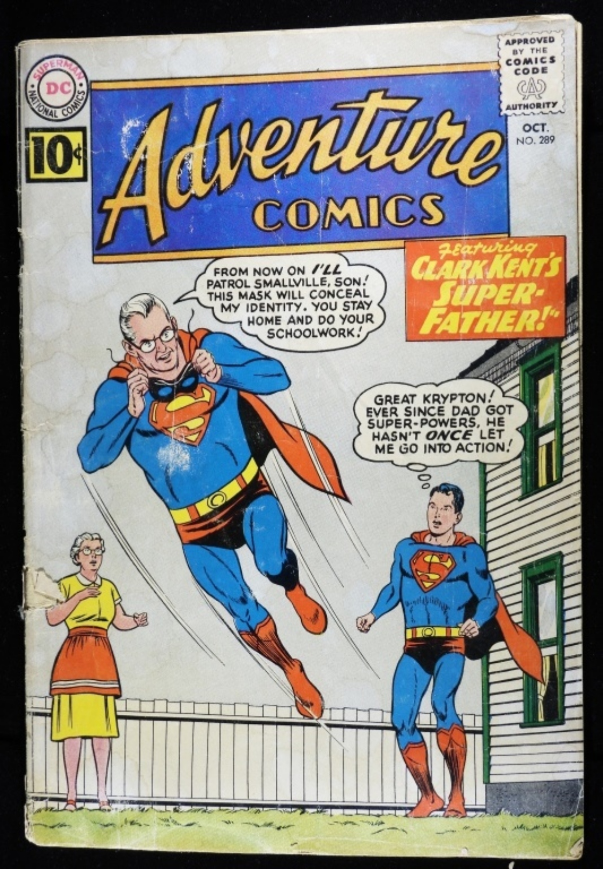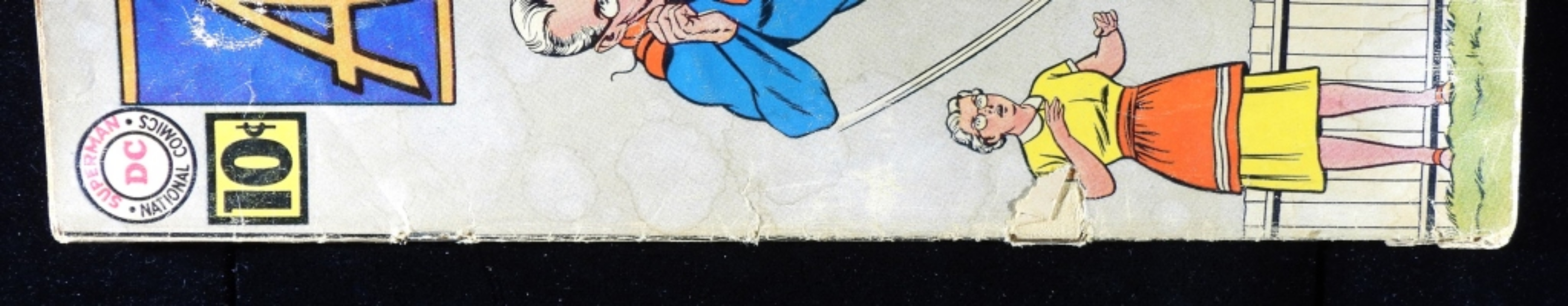 (there is discoloration on the cover, as well as a rip by the bottom staple.)