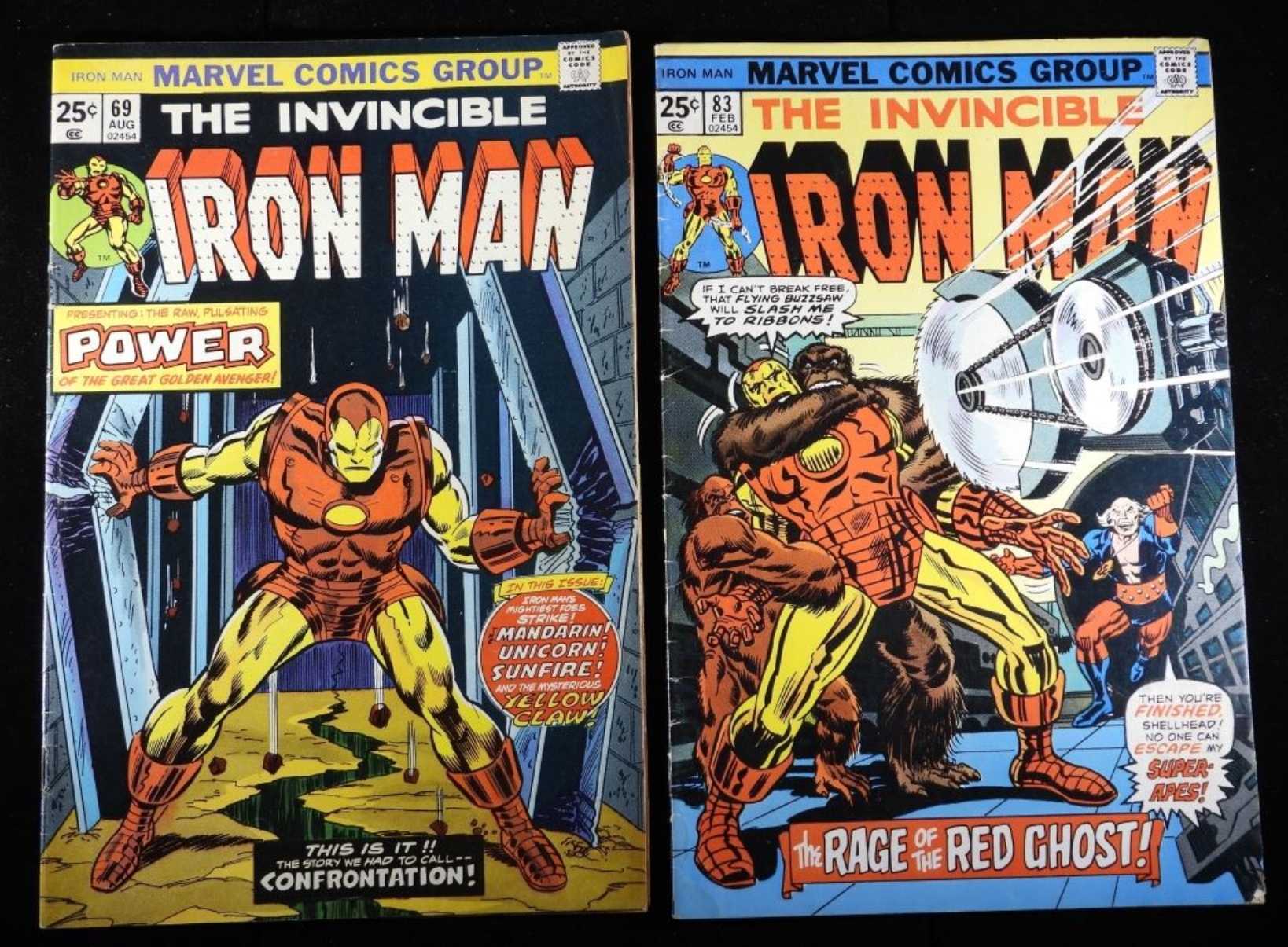 #69: 25-cent issue 1974 creases, bent corners on the top right, and wear around the spine. #83: 25-cent issue 1975, some creasing and wear along the spine.