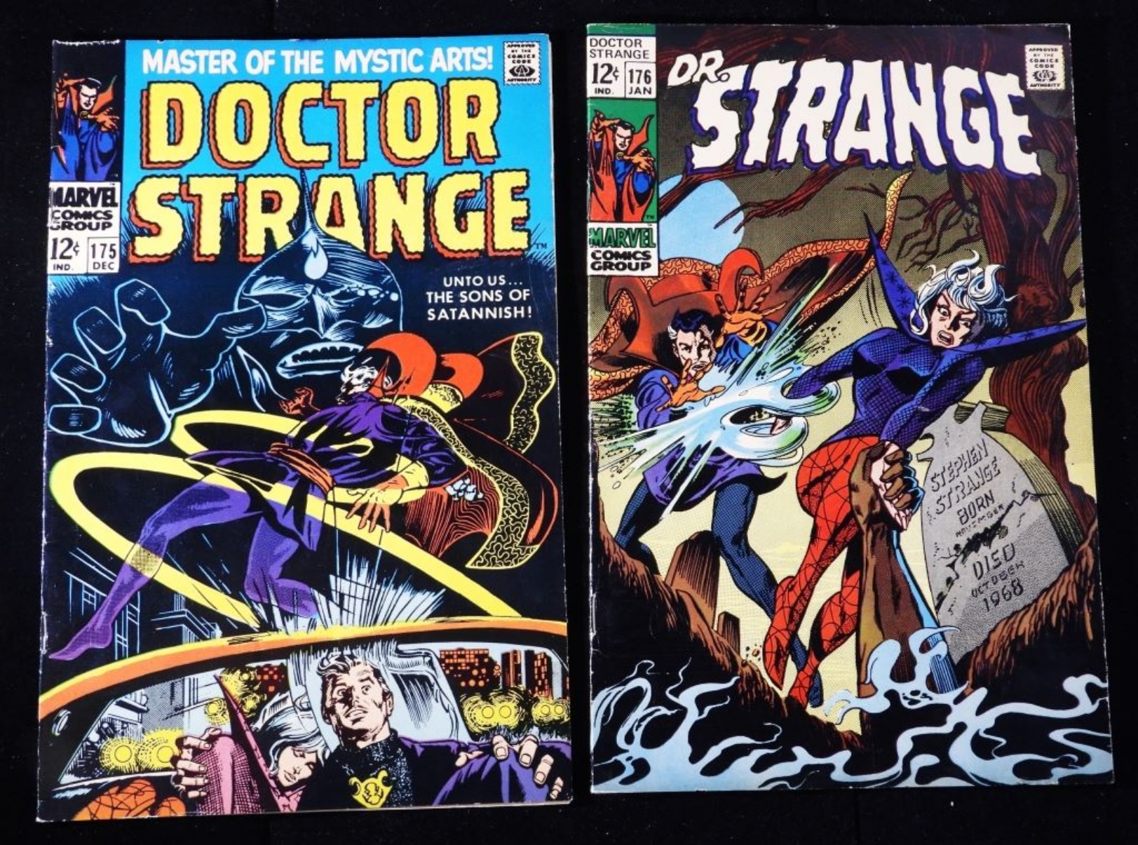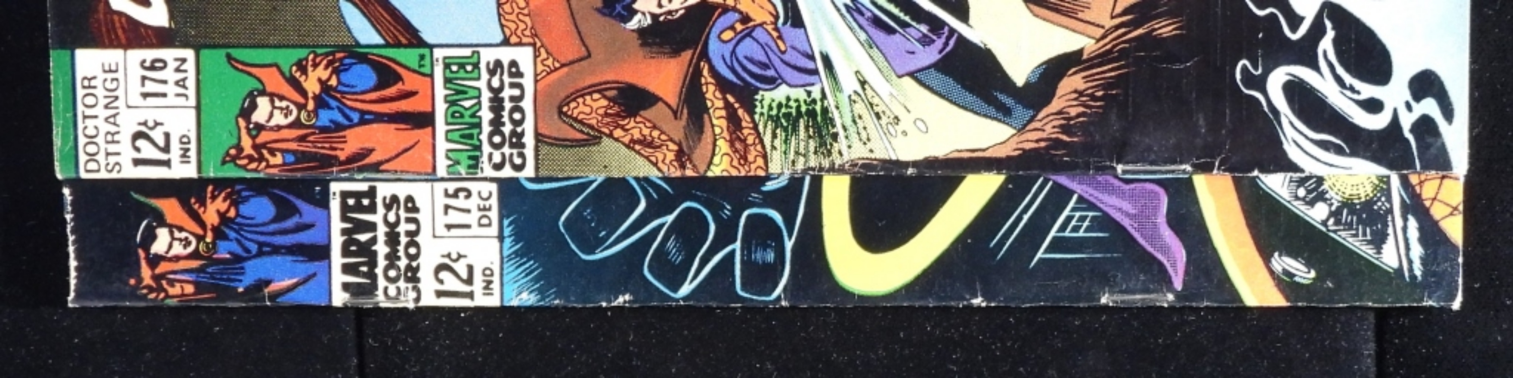 Both are in good condition, with creasing and wear along the edges. #175 1st cover appearance of Clea. 12-cent issues
