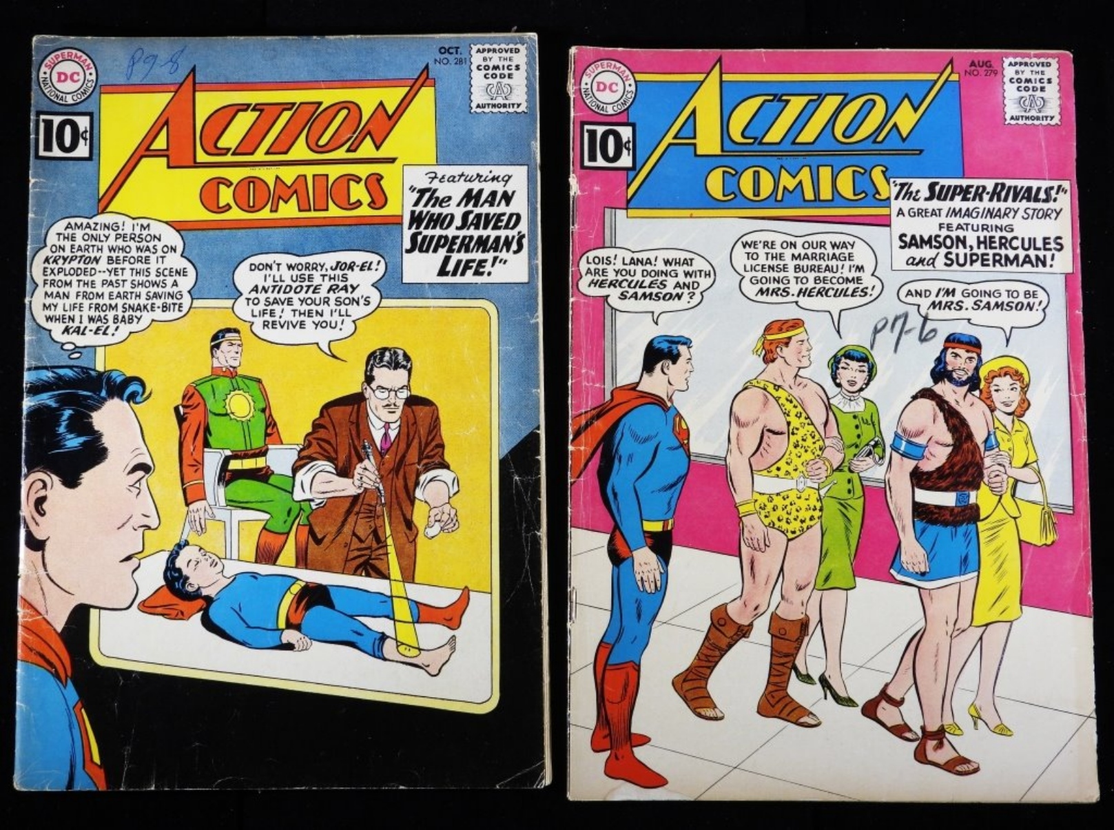There is writing on the front cover of both comics. Numbers: 279, & 281