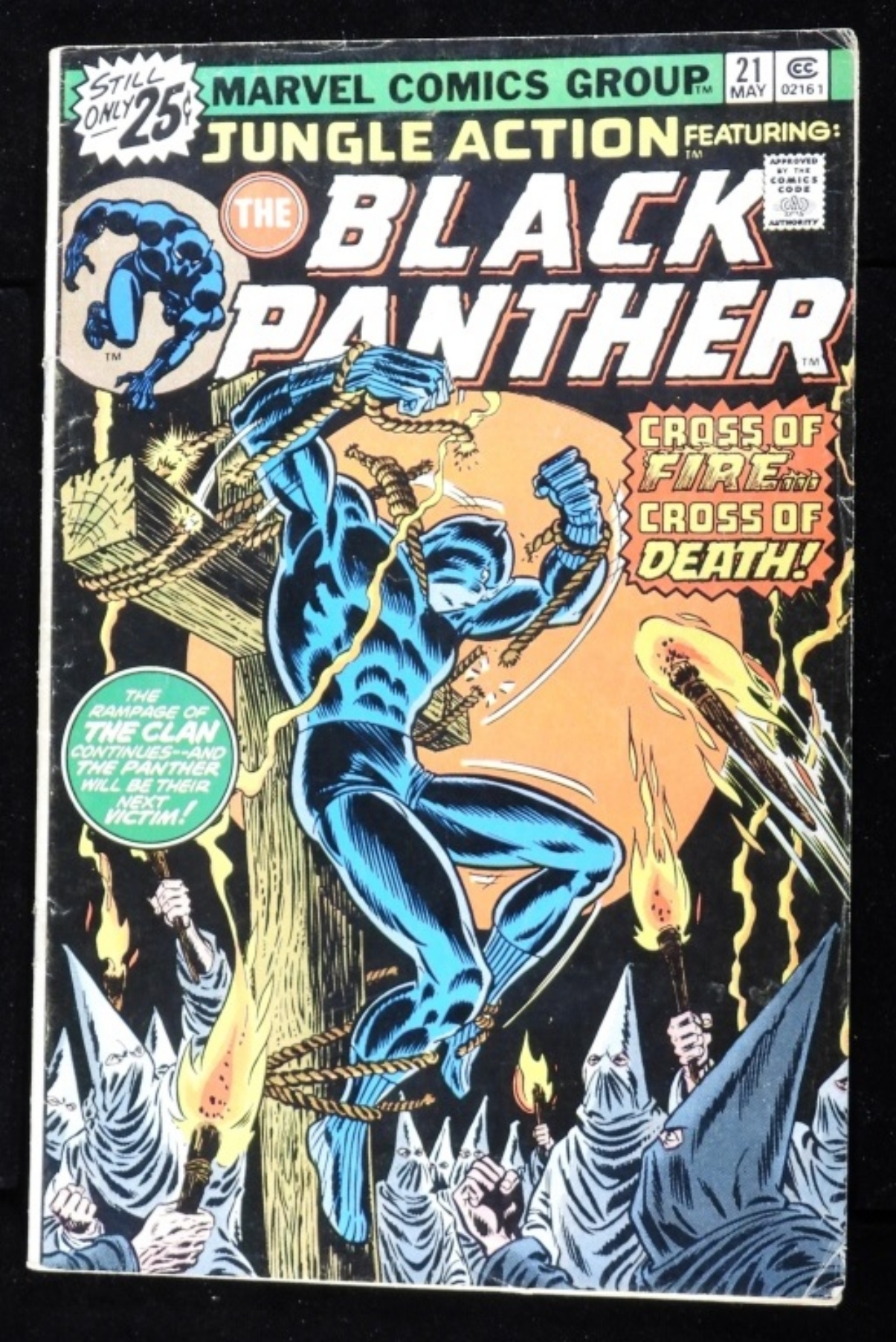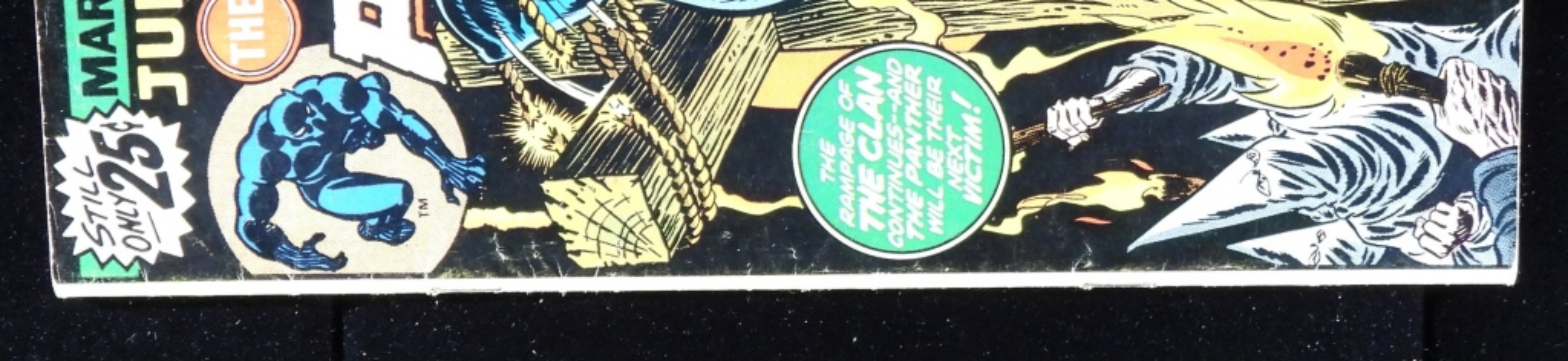 In G condition with creases and wear from the years with smug stains. Black Panther Vs. The KKK.